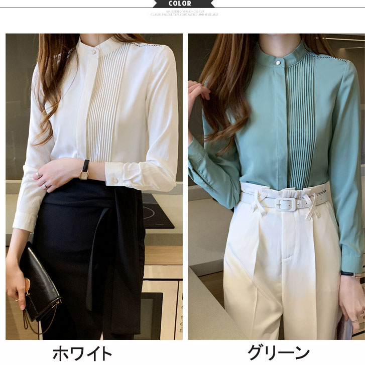 長袖 ラーシャツ トップス レディース レディースファッション 新登場! ホワイト グリーン S M L XL 2XL
