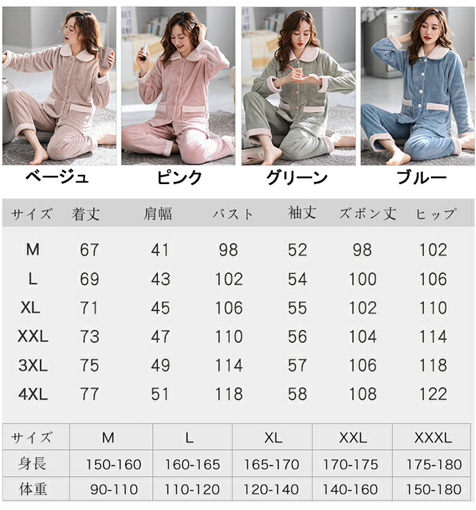 ルームウェア レディース 冬 長袖 パ インナー 下着 ナイトウエア 通販 M 体重45-55kg L 体重55-63kg XL 体重60-73kg XXL 体重70-83kg XXXL 体重80-90kg ピンク ブルー