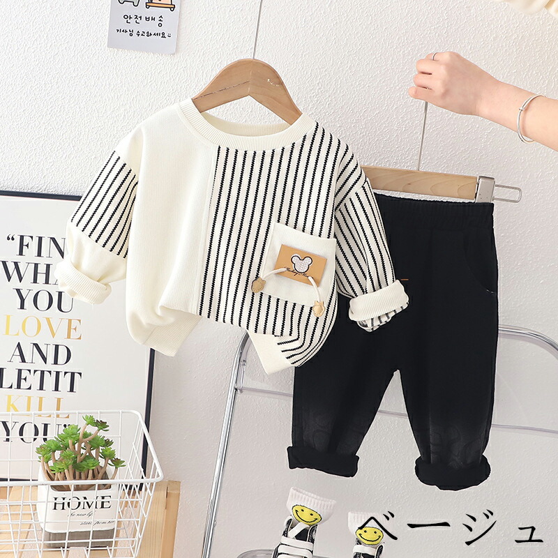 子供服 ベビーセットアップ 2点セット キッズ ベビー マタニティ 新作 ベージュ ブラック 80cm 90cm 100cm 110cm 120cm