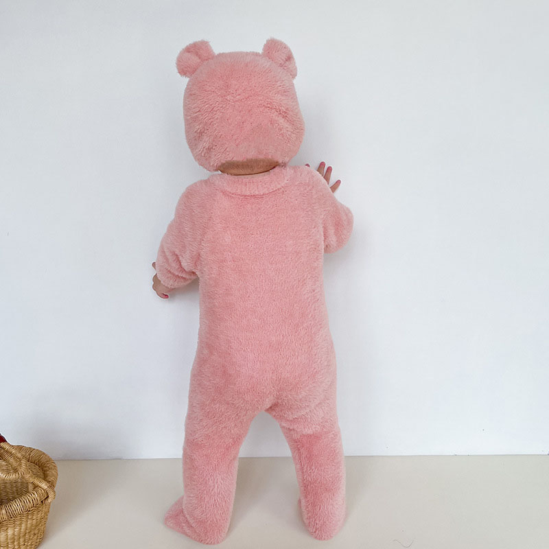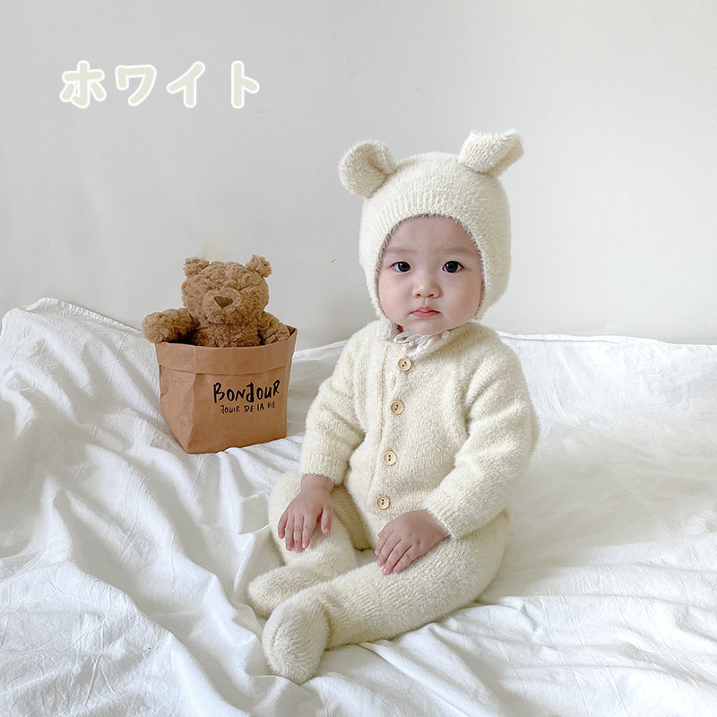 ロンパース 足付き 帽子付き もこもこ ベビー ベビー服 ファッション カバーオール ロンパース 通販 ピンク キャメル ホワイト グレー 66cm 73cm 80cm 90cm 100cm
