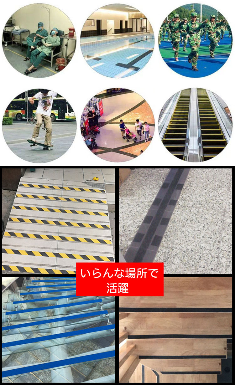滑り止めテープ 防水 厚さ0.8MM 黒 黄/黒 透明 灰 赤 黄 珈琲 青 緑 赤/白
