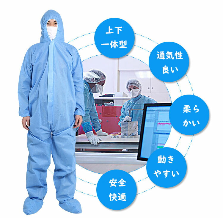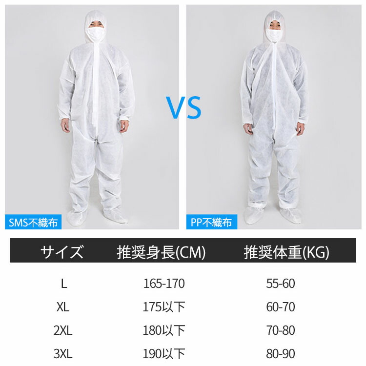 防護服 使い捨て 保護服 作業服 PP ホワイト ブルー XL XXL XXXL