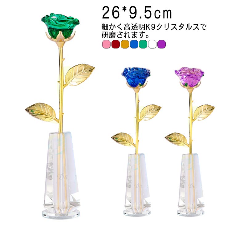 薔薇 置物 ゴールド 誕生日 プレゼン ピンク レッド ゴールド ブルー グリーン 透明 パープル