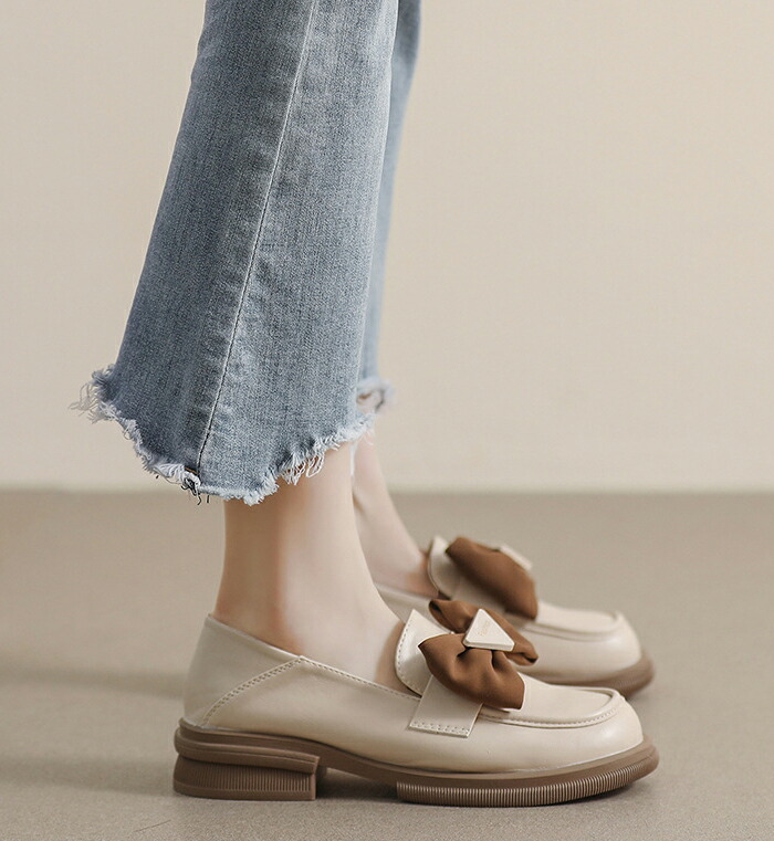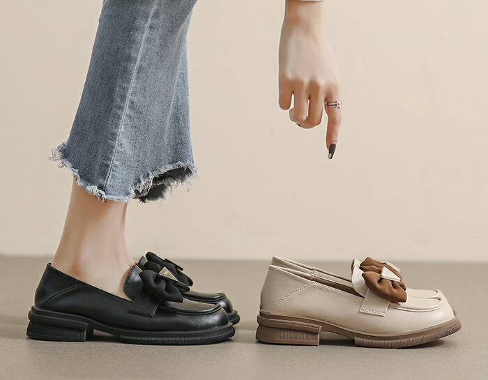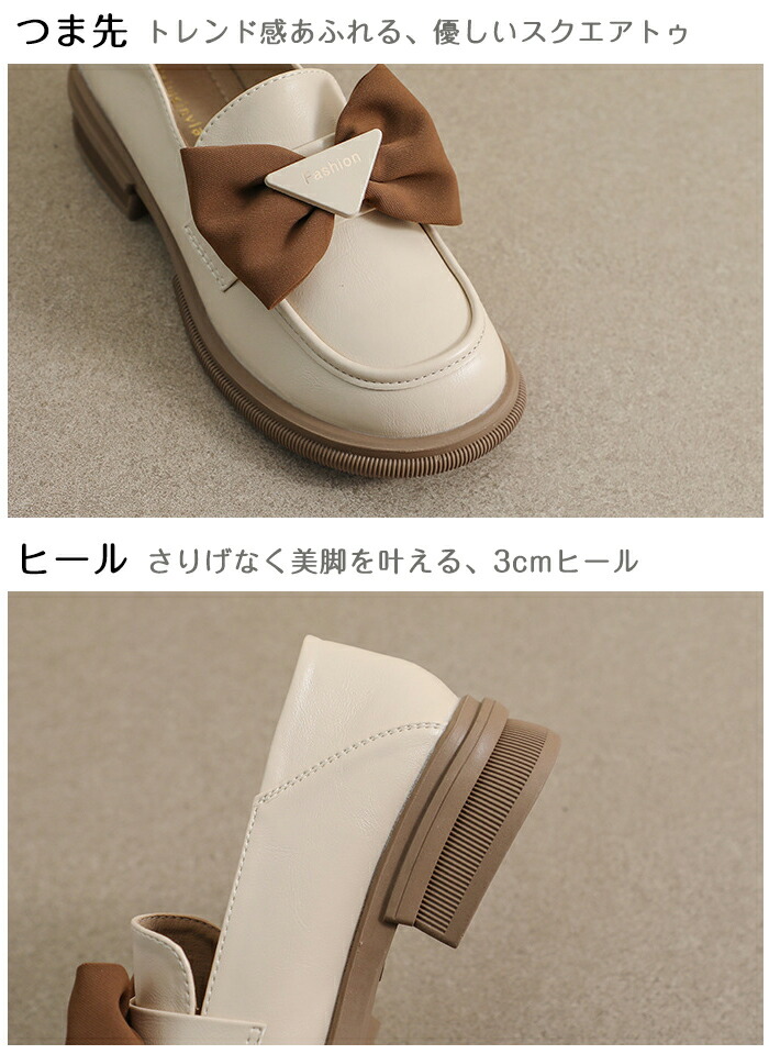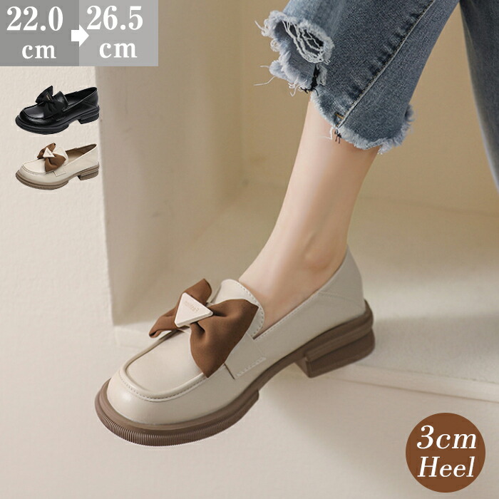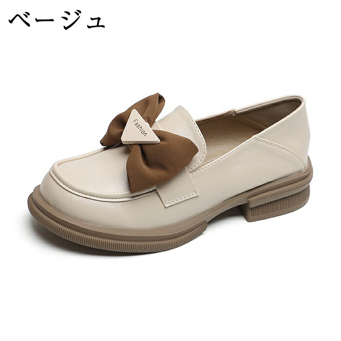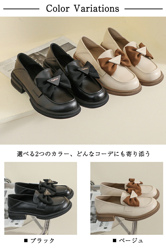 ローファー リボン レディース 厚底 靴 豊富 ブラック ベージュ 34(内寸22cm) 35(内寸22.5cm) 36(内寸23cm) 37(内寸23.5cm) 38(内寸24cm) 39(内寸24.5cm) 40(内寸25cm) 41(内寸25.5cm) 42(内寸26cm) 43(内寸26.5cm)