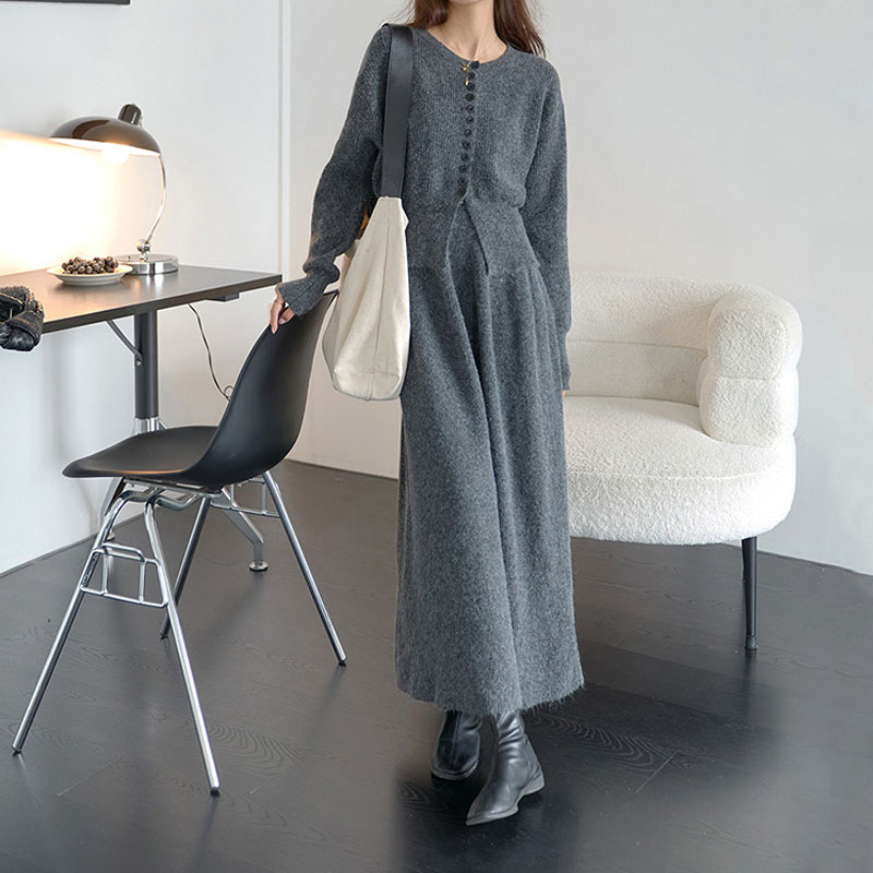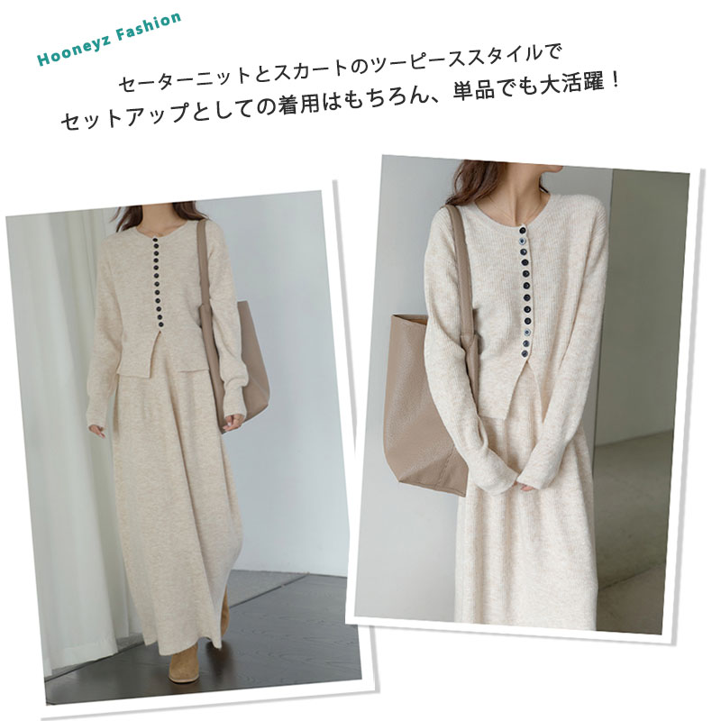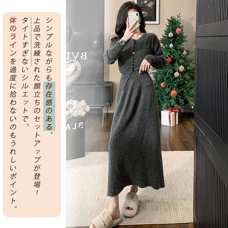 ニットセットアップ レディース セータ レディースファッション 早い者勝ち ベージュ ダークグレー