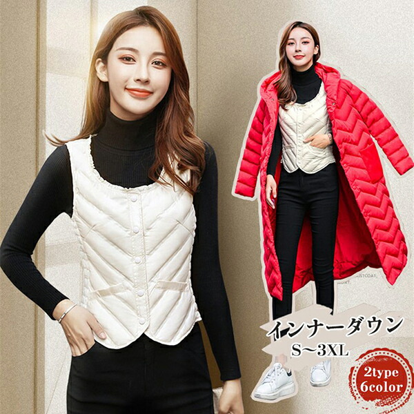 インナーダウン ライトダウン 冬用コー レディースファッション 早い者勝ち アイボリーボタン ブラックボタン ピンクボタン レッドボタン グレーボタン アイボリーチャック ブラックチャック ピンクチャック レッドチャック グレーチャック S M L XL XXL XXXL