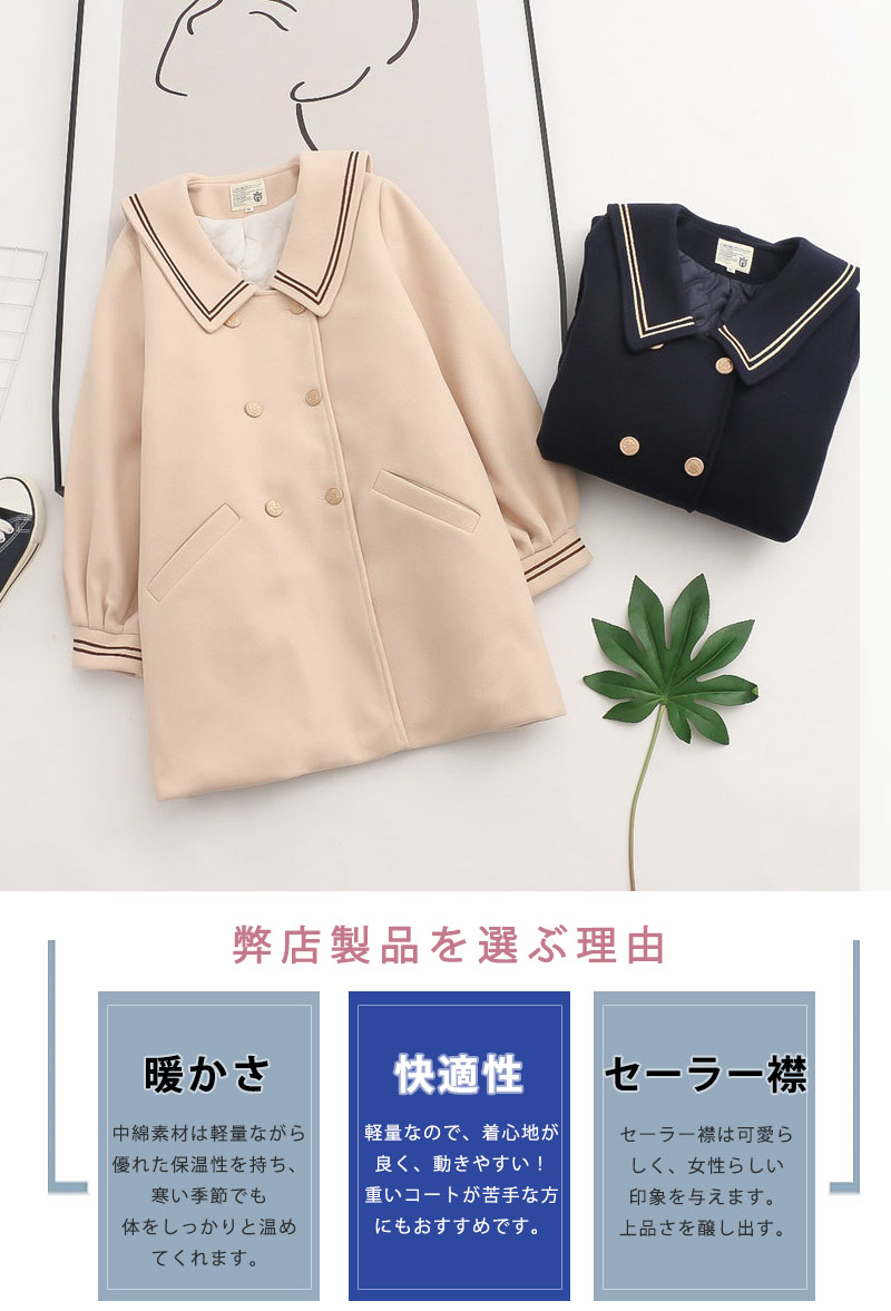 セーラー襟 ダッフルコート 学生 スク コート ジャケット 豊富な品揃え ベージュ ネイビー S M L