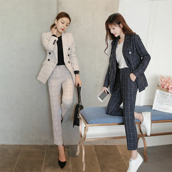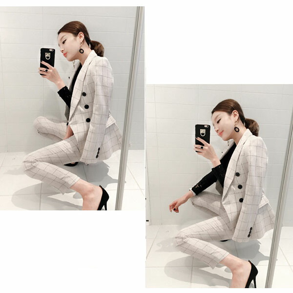 チェック柄スーツ セットアップ レディ レディースファッション 人気 オフホワイト ネイビー S M L XL