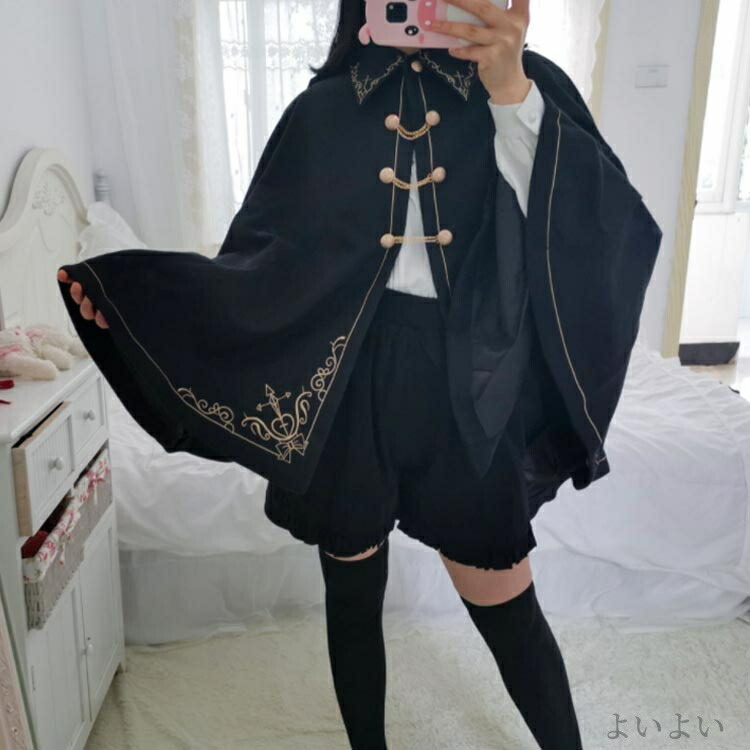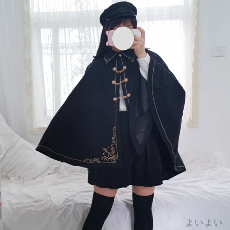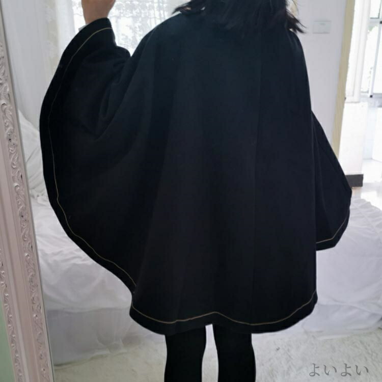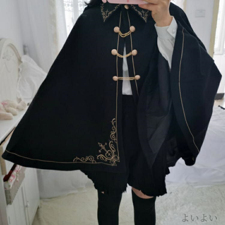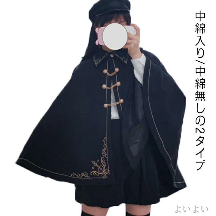 格好いい ケープ 刺繍ラシャコート ゴ レディースファッション 早い者勝ち ブラック 中綿ブラック S M L
