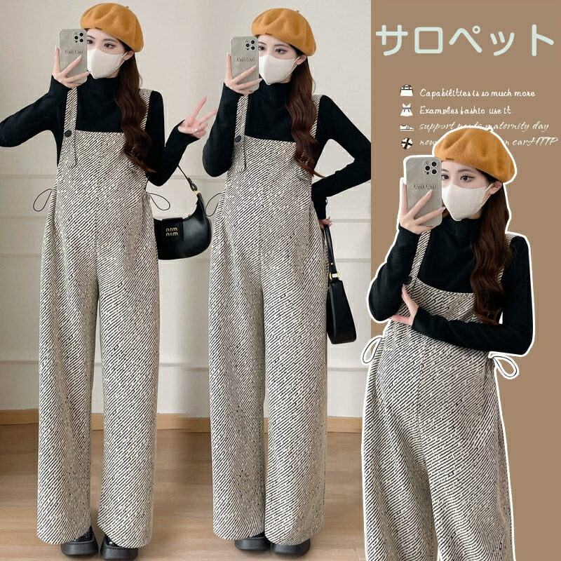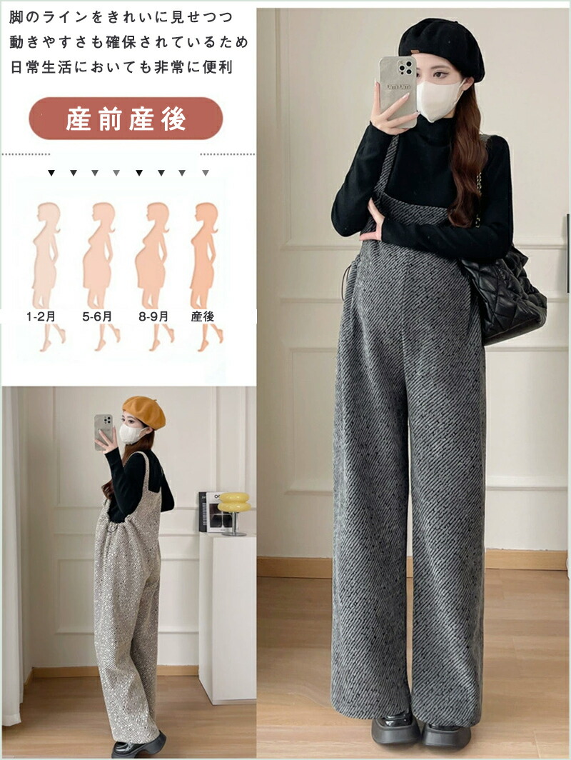 マタニティ サロペット オーバーオール 産前産後 レディース ワイトパンツ 着痩せ 妊婦 春 秋 冬 臨月 マタニティ服 ロング ロングパンツ ゆったり 大きいサイズ カジュアル マタ 着痩せボトムス