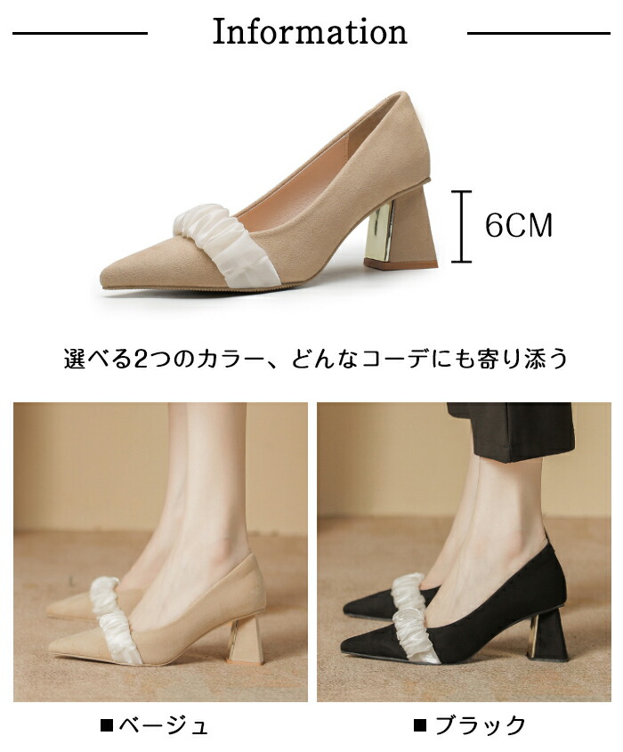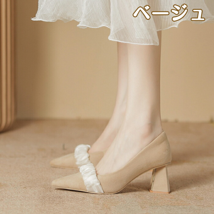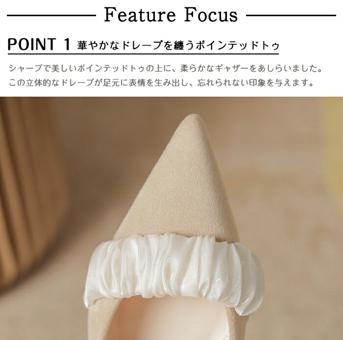ポインテッドトゥ ギャザー パンプス レディース靴 パンプス 続々登場 ベージュ ブラック 35(内寸22.5cm) 36(内寸23cm) 37(内寸23.5cm) 38(内寸24cm) 39(内寸24.5cm)