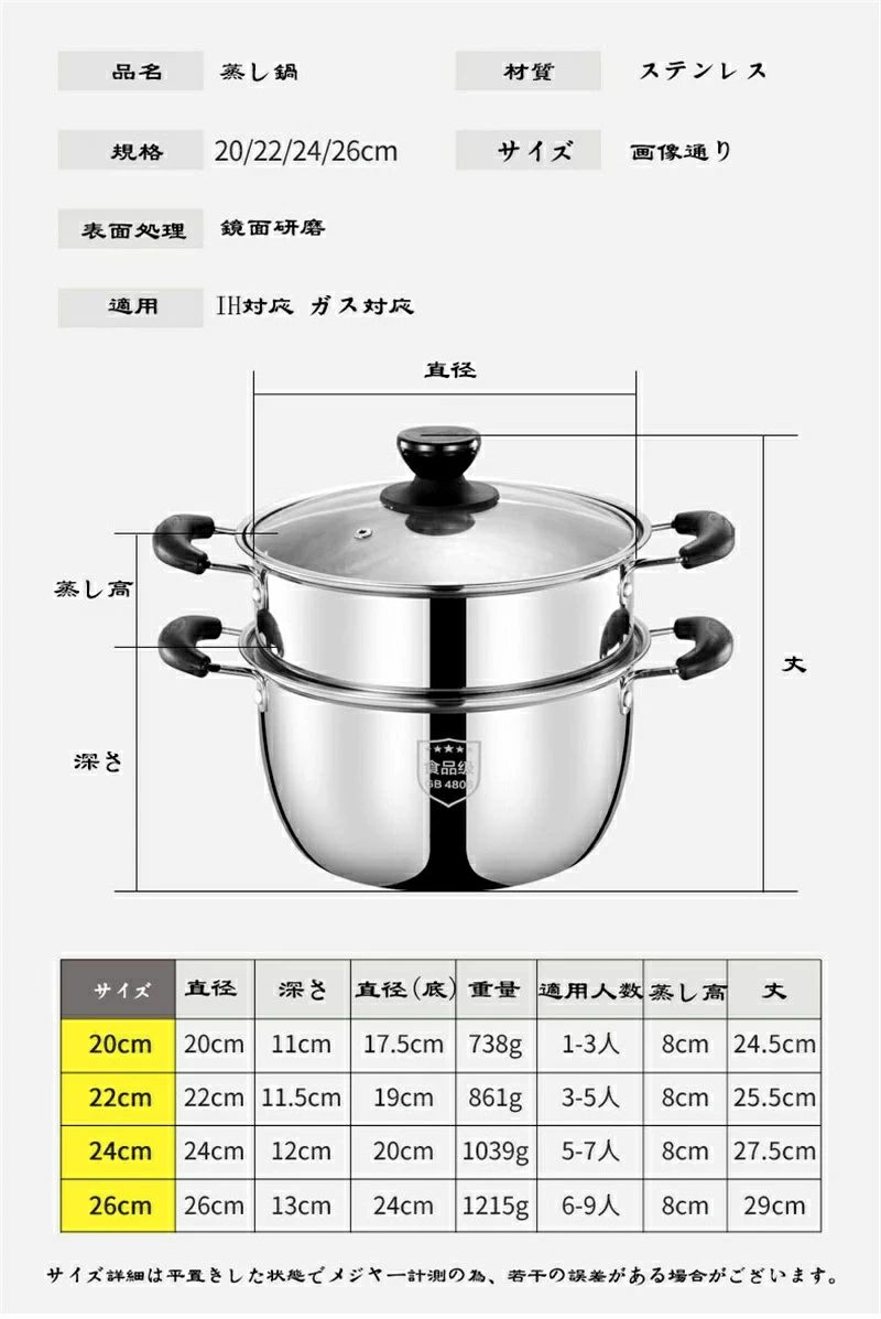 蒸し器 鍋 22cm 24cm 26c 単層鍋底 三層鍋底 22cm 24cm 26cm