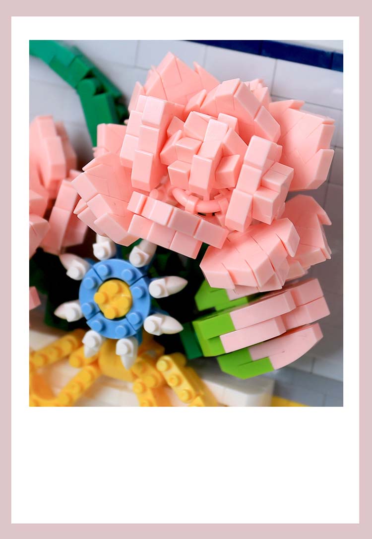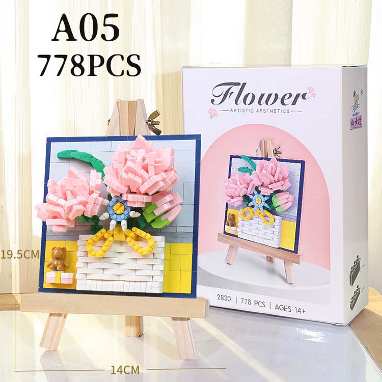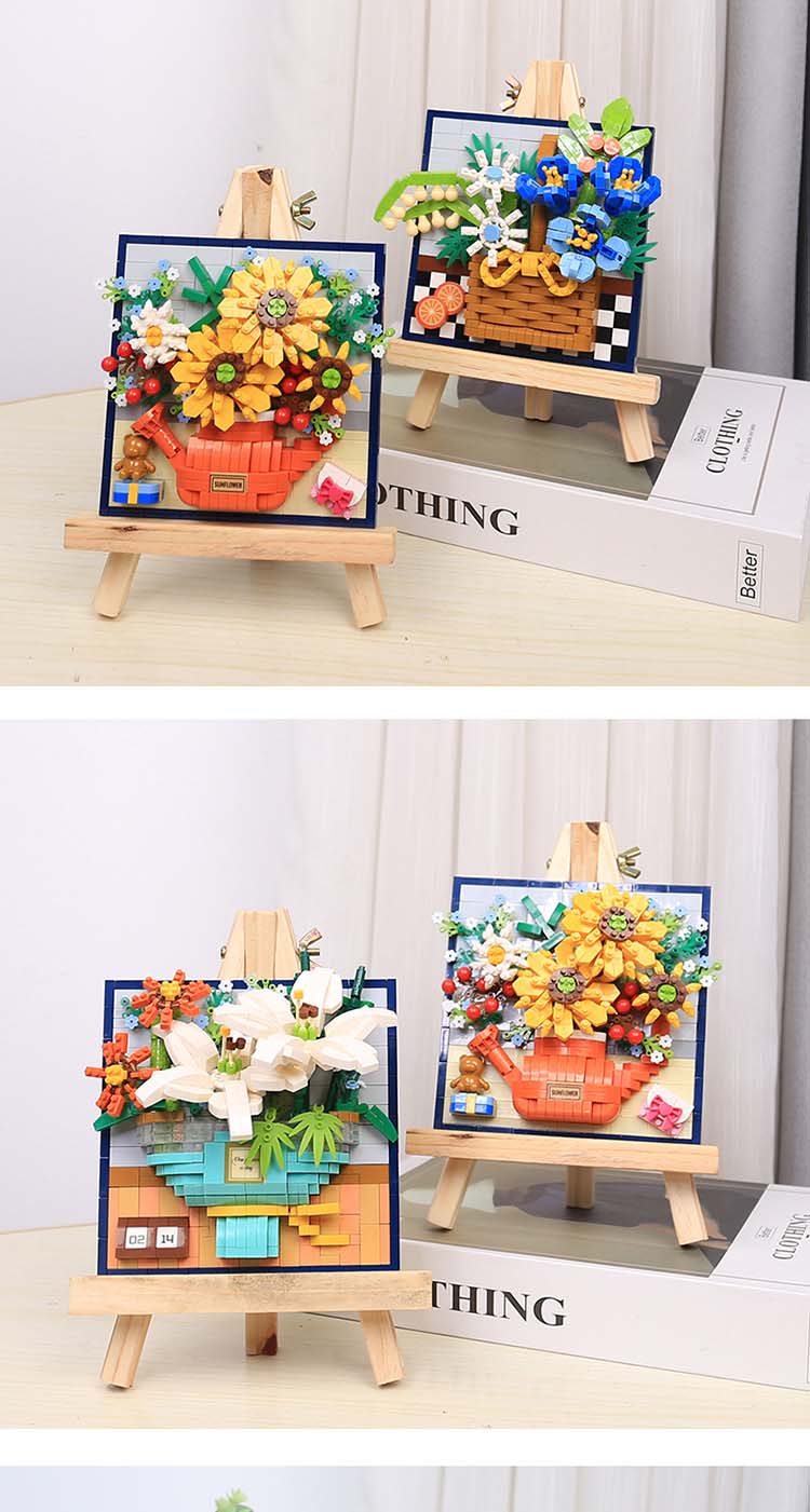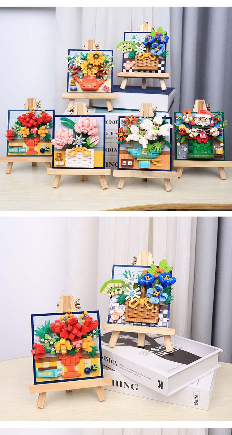 ミニブロック レゴアート フラワーアート 木製イーゼル付き ひまわり 青いカーネーション ゆり バラ ピンクカーネーション