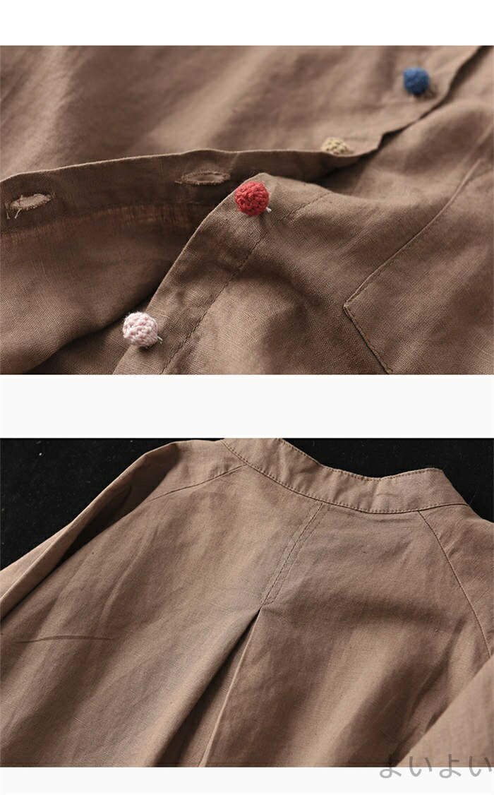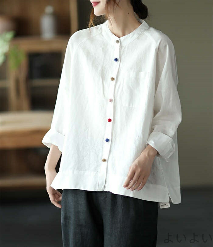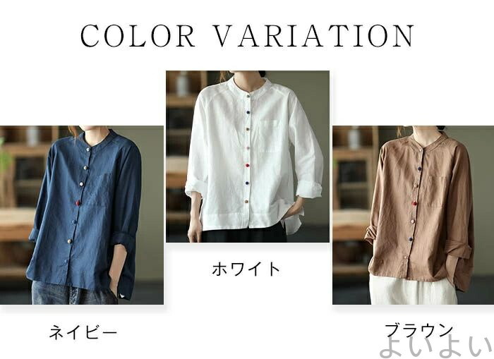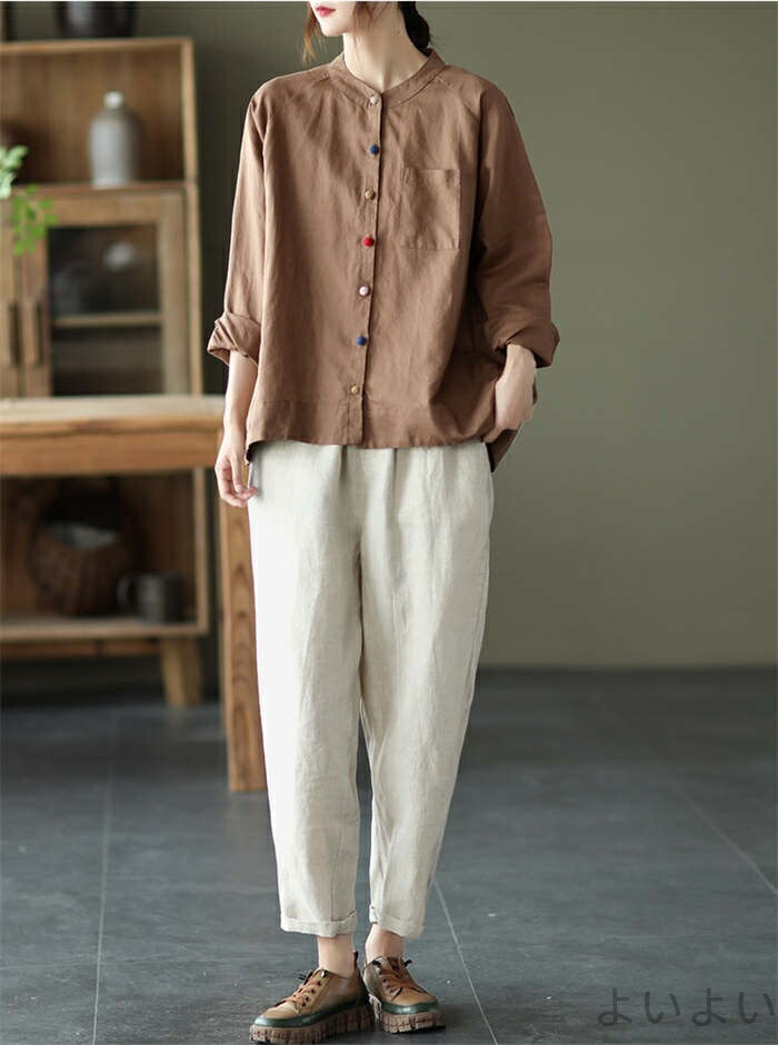 シャツ レディース リネン コットン トップス シャツ ブラウス 新登場! ネイビー ホワイト ブラウン M L XL 2XL