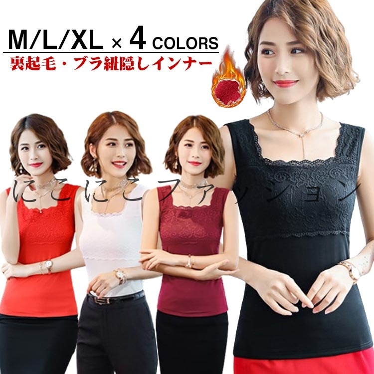 レディース 重ね着 レース 発熱インナ トップス タンクトップ 早い者勝ち ホワイト ブラック ワイン レッド M(薄手) L(薄手) XL(薄手) M(裏起毛) L(裏起毛) XL(裏起毛)