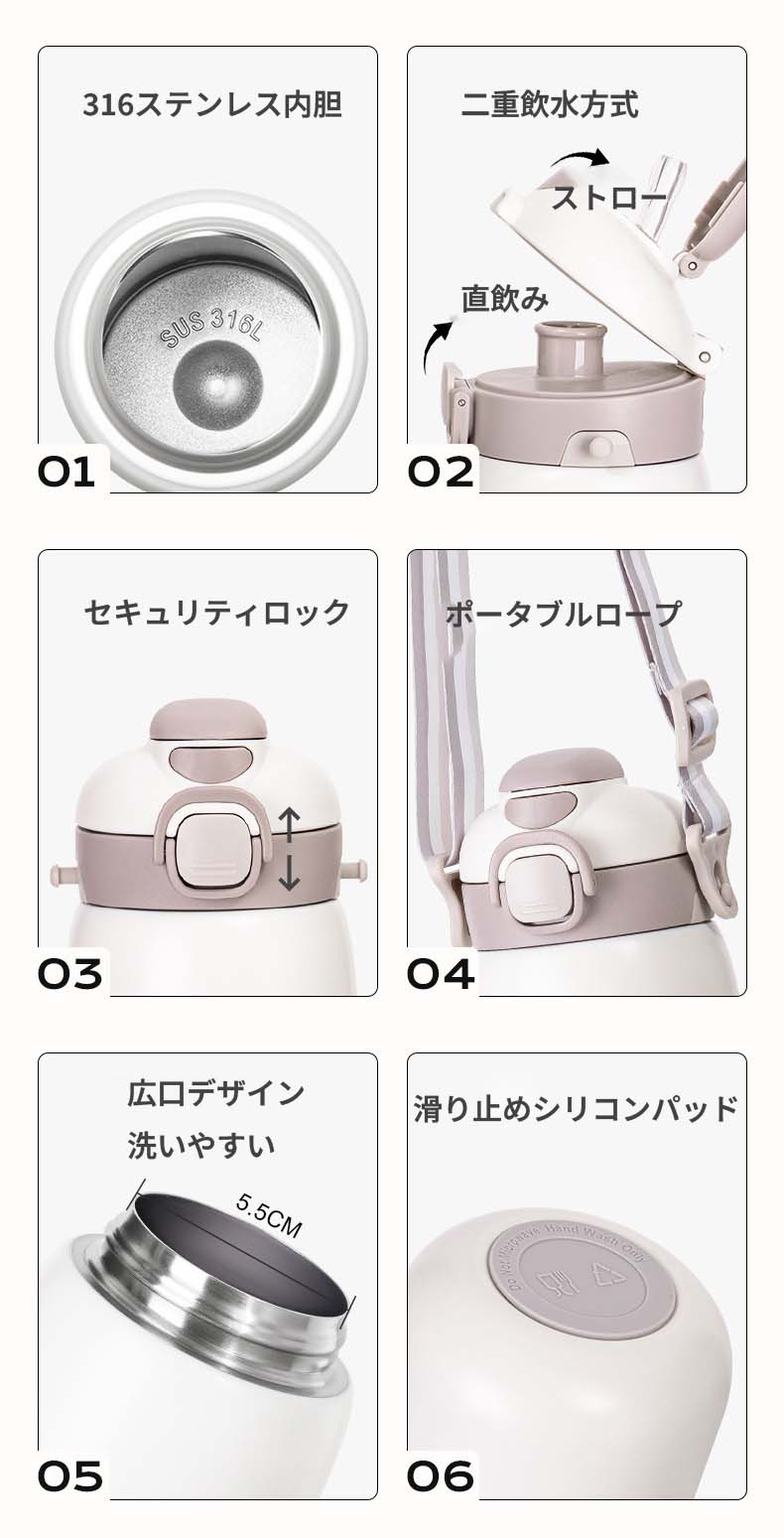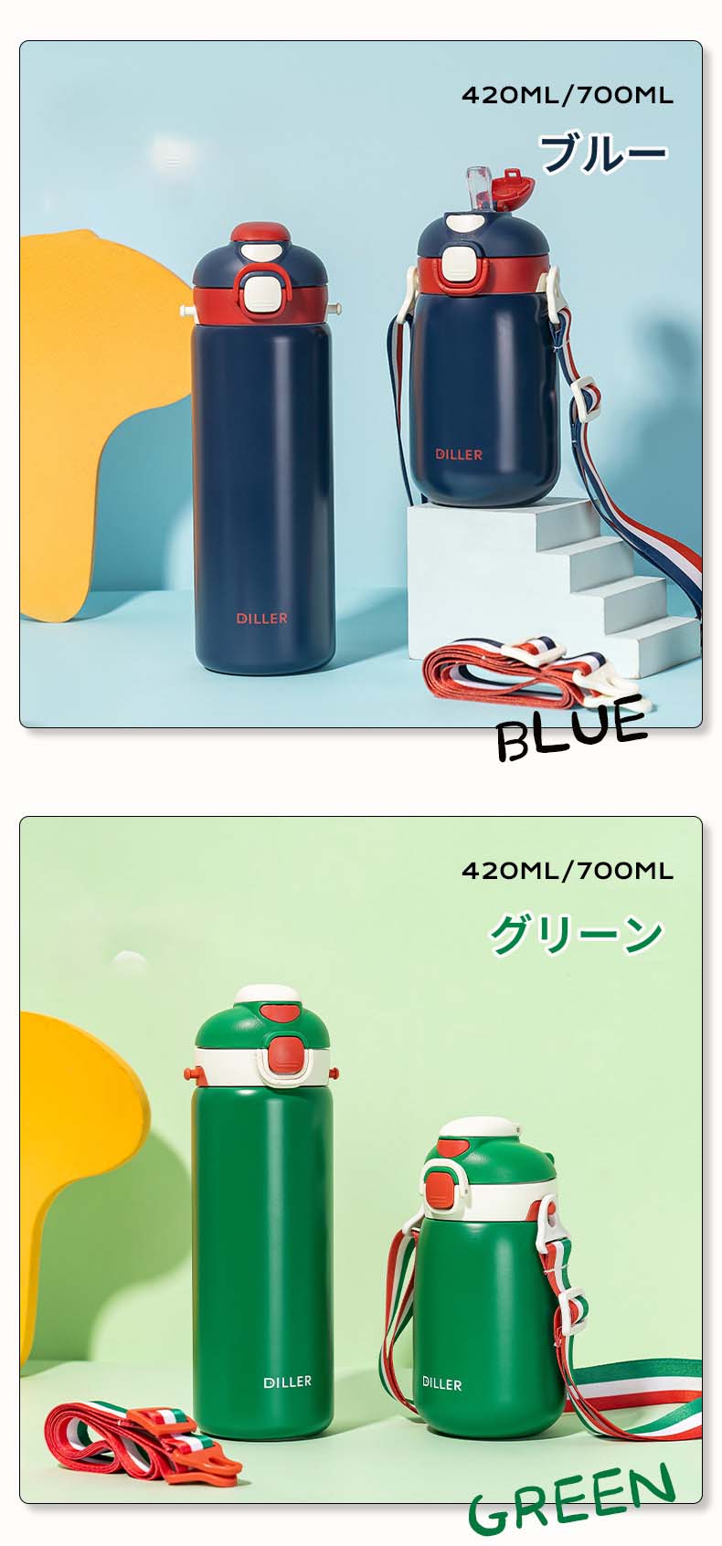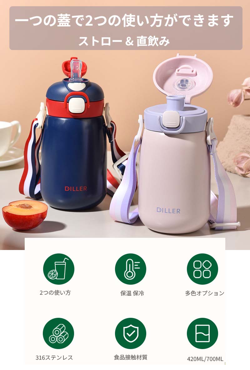 水筒 キッズ 子供用 直飲み ストロー 弁当箱 水筒 子供用弁当箱 水筒 水筒 コップ 水筒 豊富 ホワイト ピンク ブルー グリーン 420ML 700ML