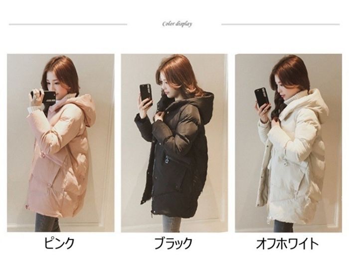 中綿コート レディース ミディアム丈 コート ジャケット 豊富な品揃え ブラック ピンク オフホワイト S M L XL 2XL