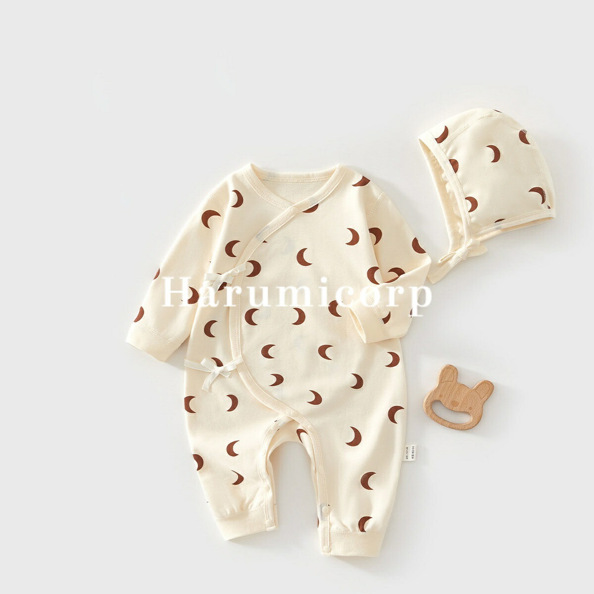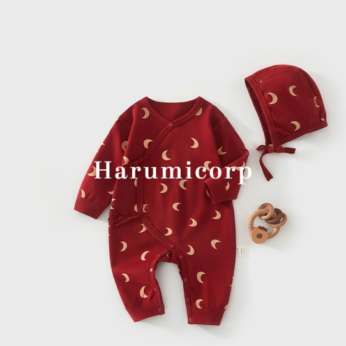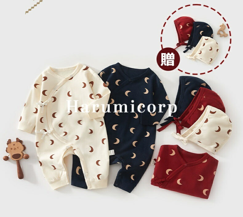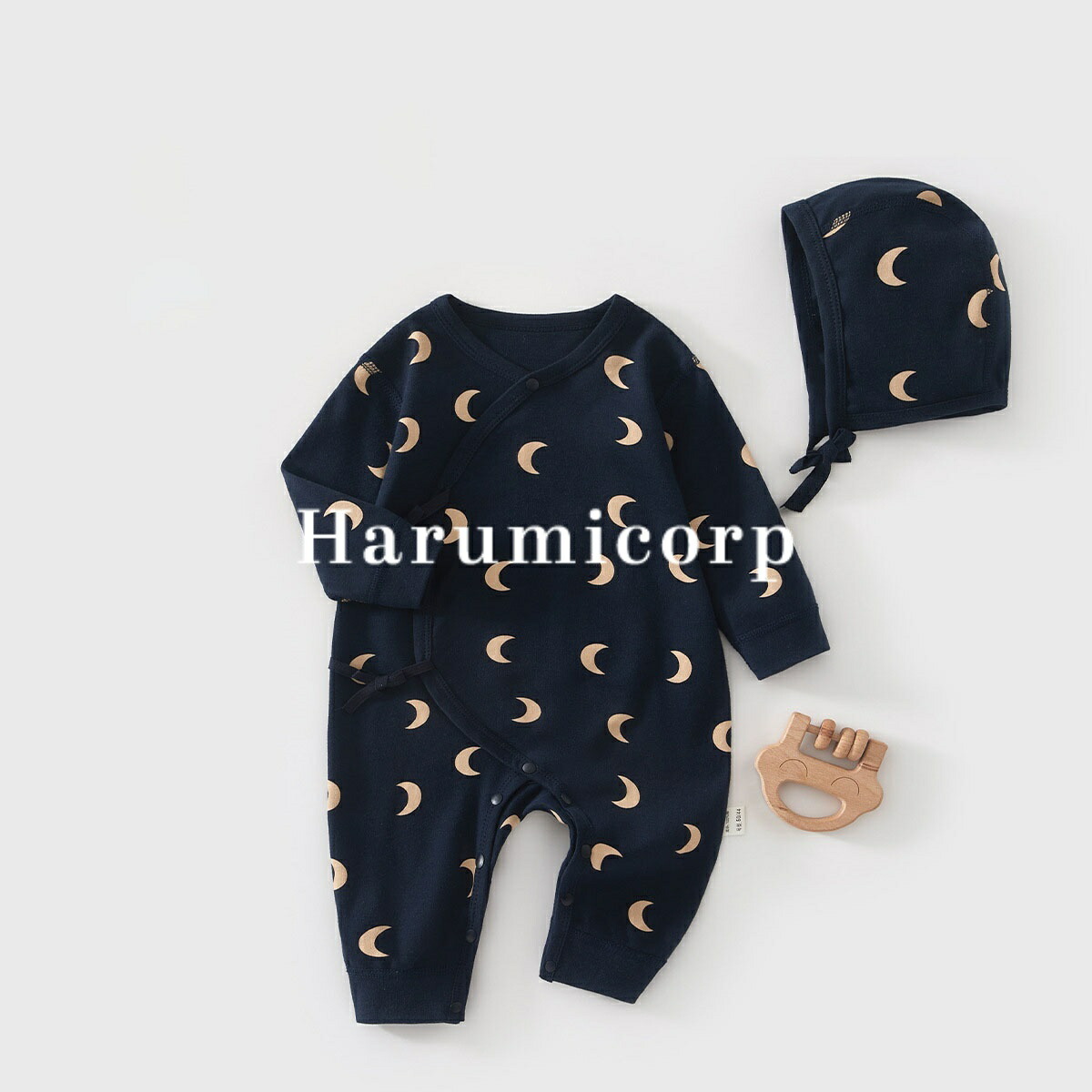 帽子付き ロンパース 長袖 月 女の子 ベビー ベビー服 ファッション カバーオール ロンパース 通販 ベージュ レッド ブルー 52cm 59cm 66cm 73cm 80cm