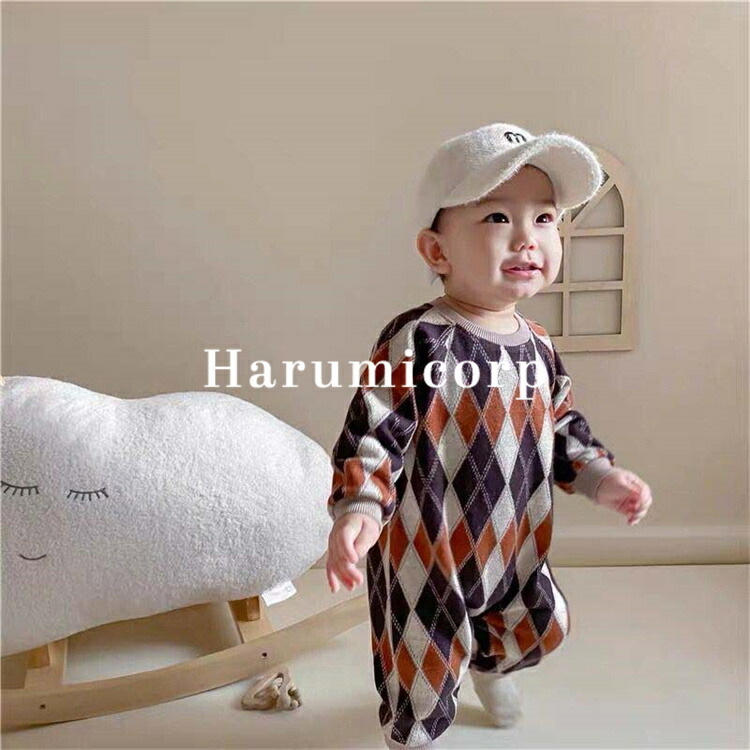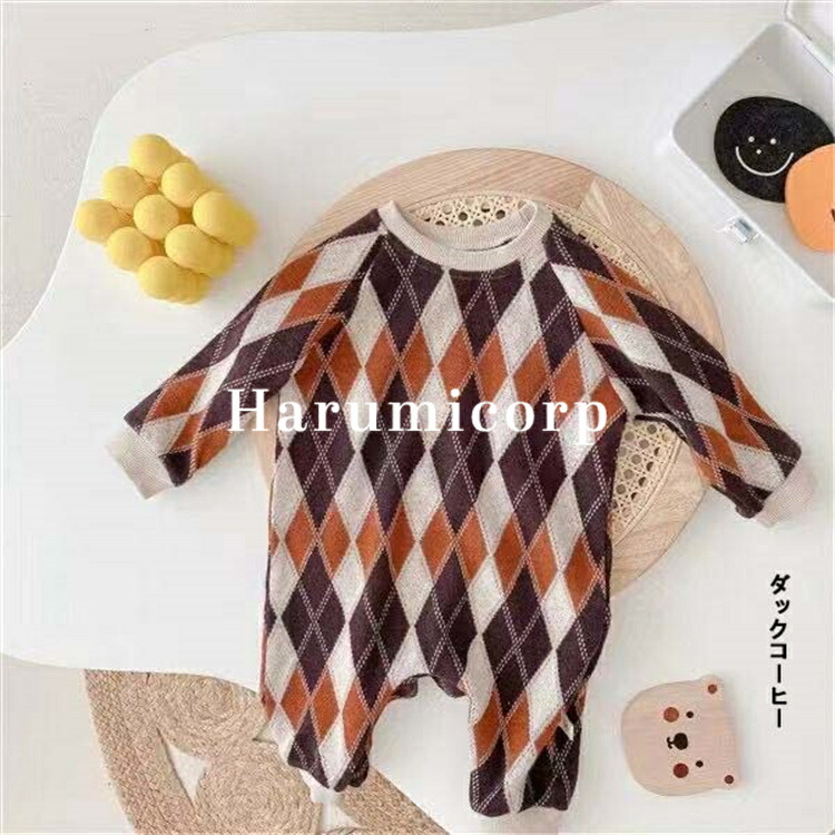 ロンパース 長袖 ベビー服 女の子 男 ベビー ベビー服 ファッション カバーオール ロンパース 人気 ダックコーヒー ライトコーヒー ブルー レッド 66cm 73cm 80cm 90cm