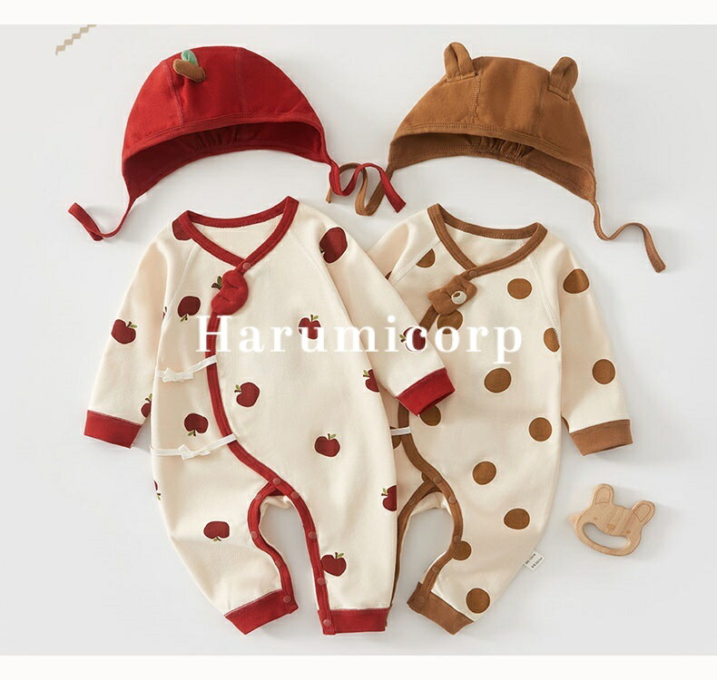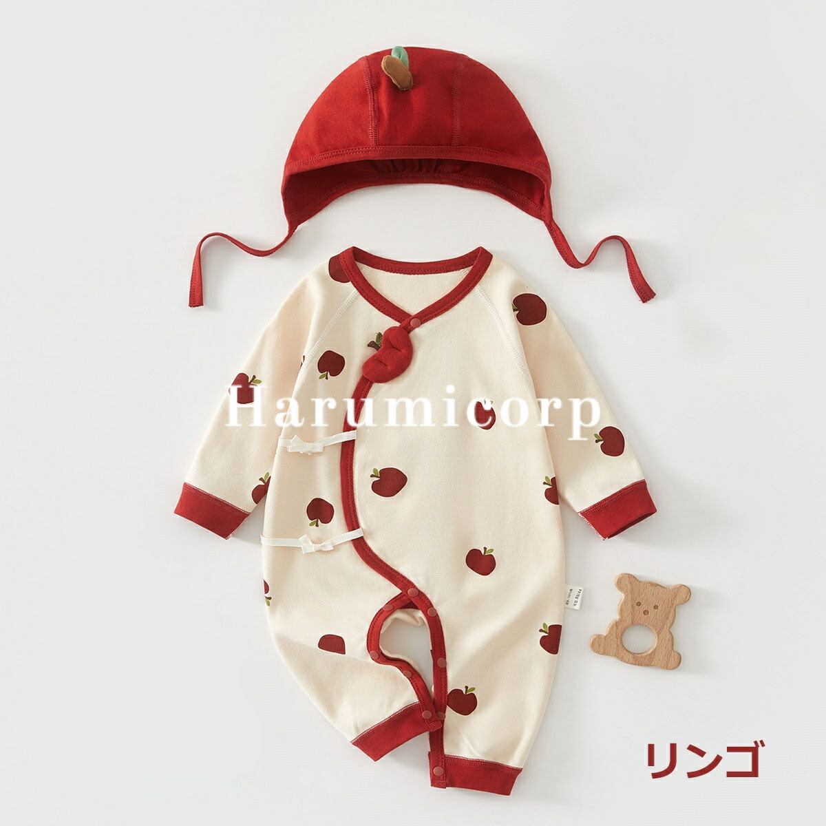 くまちゃん 着ぐるみ 熊耳 ロンパース キッズ ベビー マタニティ 通販 クマ リンゴ 52cm 59cm 66cm 73cm 80cm
