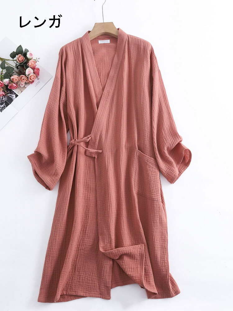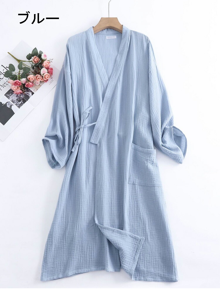 7色 春夏秋冬 ガーゼコットン 薄手い レディース ナイトウェア ルームウェア バスローブ 新登場! L XL 2XL 女-ネイビー 女-ライトグレー 女-ピンク 女-ホワイト 男-ネイビー 男-ダークグレー 男-ホワイト 男-ライトグレー 女-パープル 女-レンガ 男-ブルー