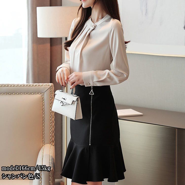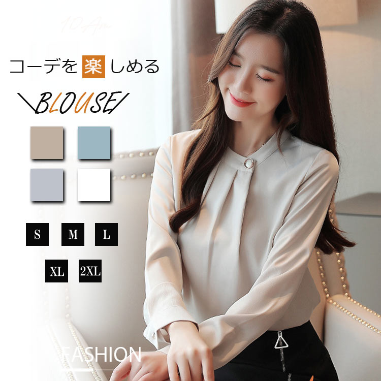 ブラウス レディース シフォン オフィ トップス シャツ ブラウス 超目玉商品 シャンパン色 シルバーグレー ミズイロ ホワイト S M L XL 2XL