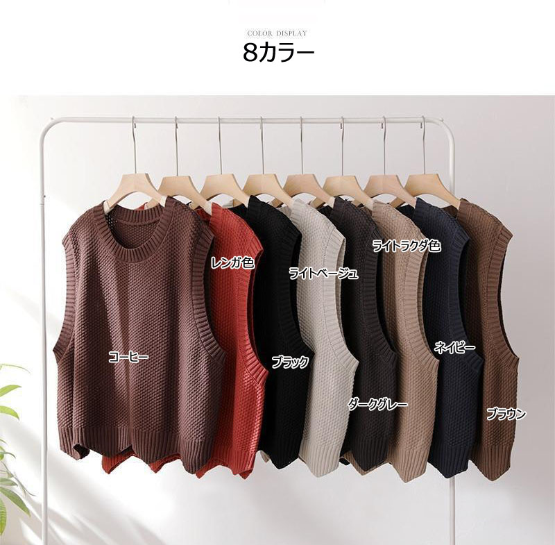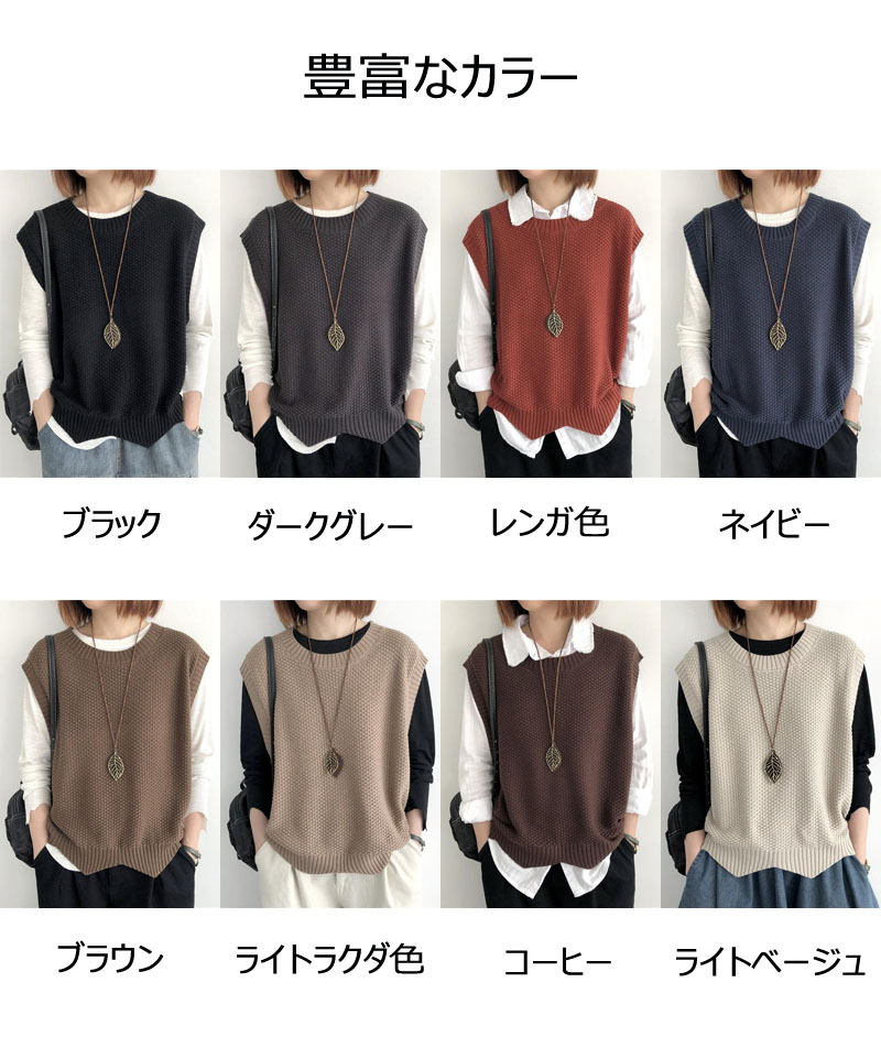 ニット ベスト レディース 春 秋 冬 トップス ベスト 早い者勝ち ブラック ダークグレー レンガ色 ネイビー ブラウン ライトラクダ色 コーヒー ライトベージュ