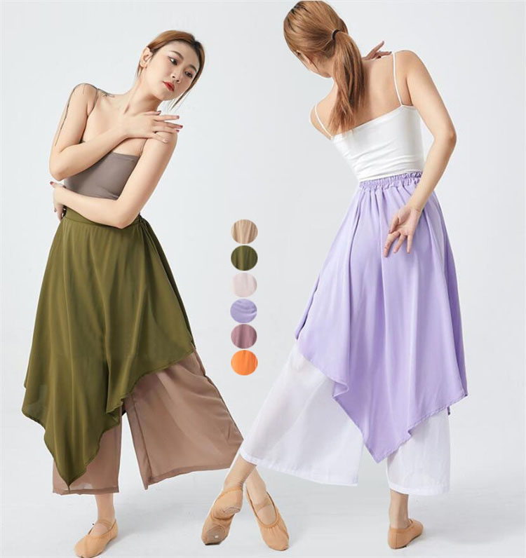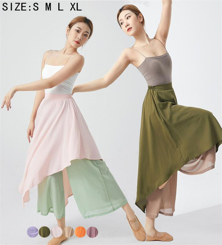 レディース ダンスパンツ ダンススカート 古典ダンス衣装 ガウチョパンツ ワイドパンツ スカーチョ サルエルパンツ 社交ダンス 練習着 レッスン着 アシンメトリー 個性 古典舞踊 バレエ 二重シフォン