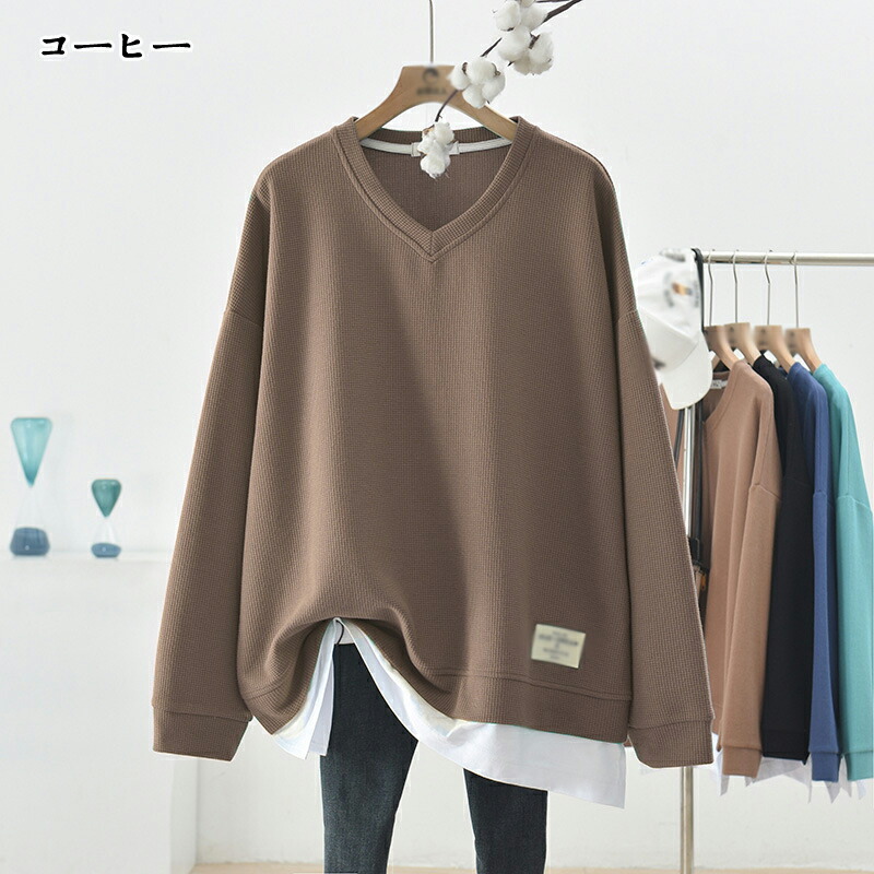 新作 レディース 個性 長袖 無地 ト レディースファッション 通販 ピンク グリーン ブラック ブルー コーヒー L XL 2XL 3XL 4XL