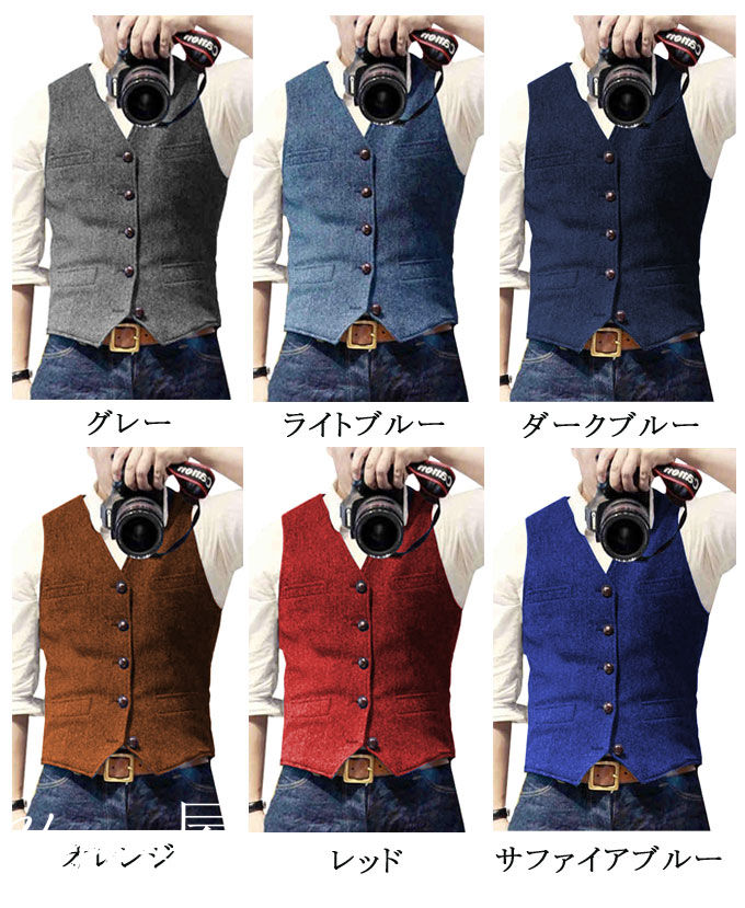 ベスト メンズ スーツ ジレ ツイード メンズファッション 豊富 レッド グリーン グレー ブラウン カーキ ブラック ワインレッド コーヒー色 ダークブルー ライトブルー オレンジ サファイアブルー ライトグレー ベージュ XS S M L XL 2XL 3XL 4XL 5XL 6XL