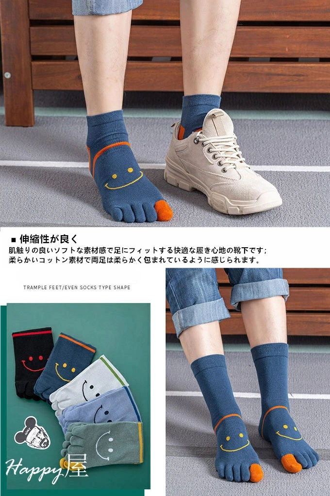 5本指ソックス メンズ 五本指靴下 靴下 蒸れない ビジネス 高品質 綿 ソックス 可愛い 笑顔 カジュアル 抗菌 防臭 おしゃれ 通気性 敬老の日 プレゼント 四季適用 あったか 秋 ギフト