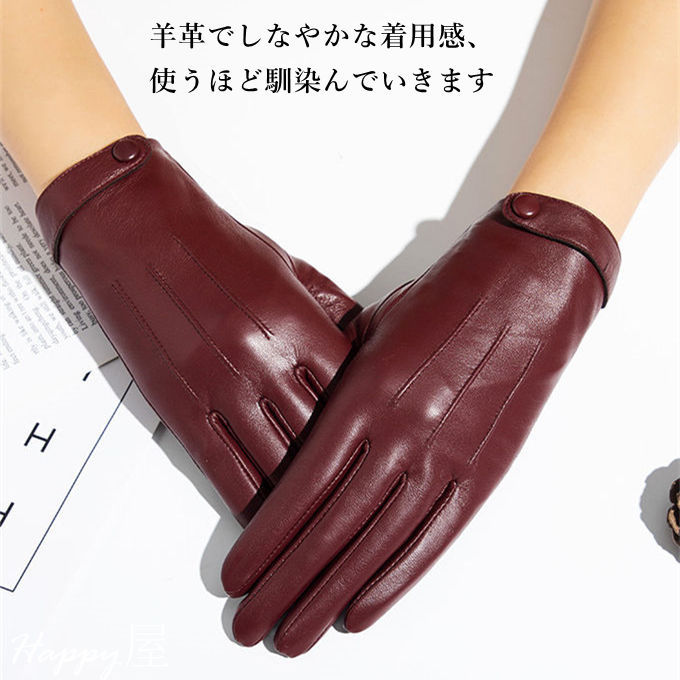 本革手袋 レディース スマートフォン スマホ手袋 本革 レザーグローブ レザー手袋 シープスキン 羊革 シンプル タッチパネル対応 女性 防寒 裏起毛 上質 暖かい てぶくろ ラムレザー 秋 防寒手袋