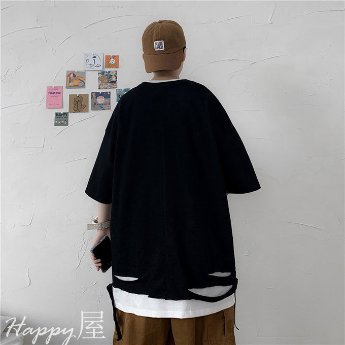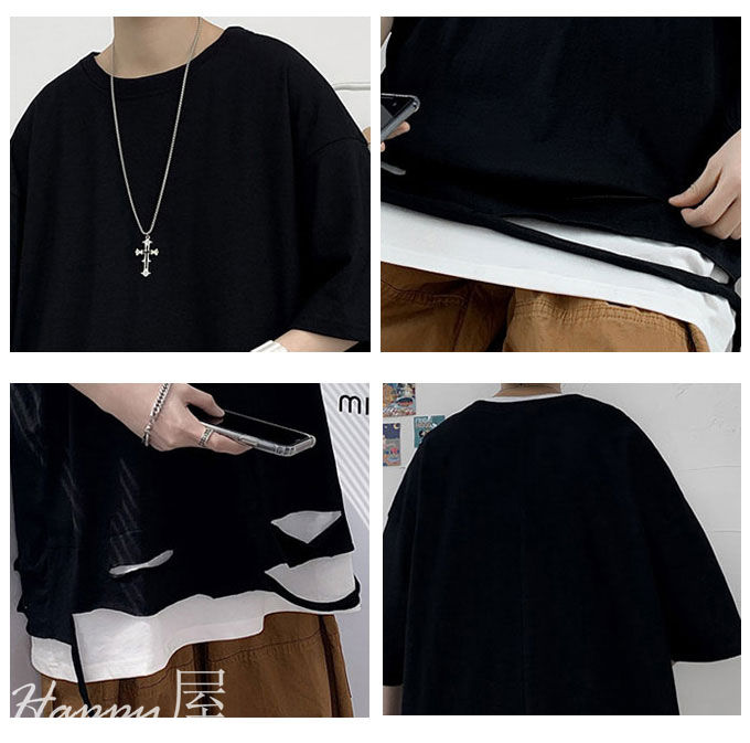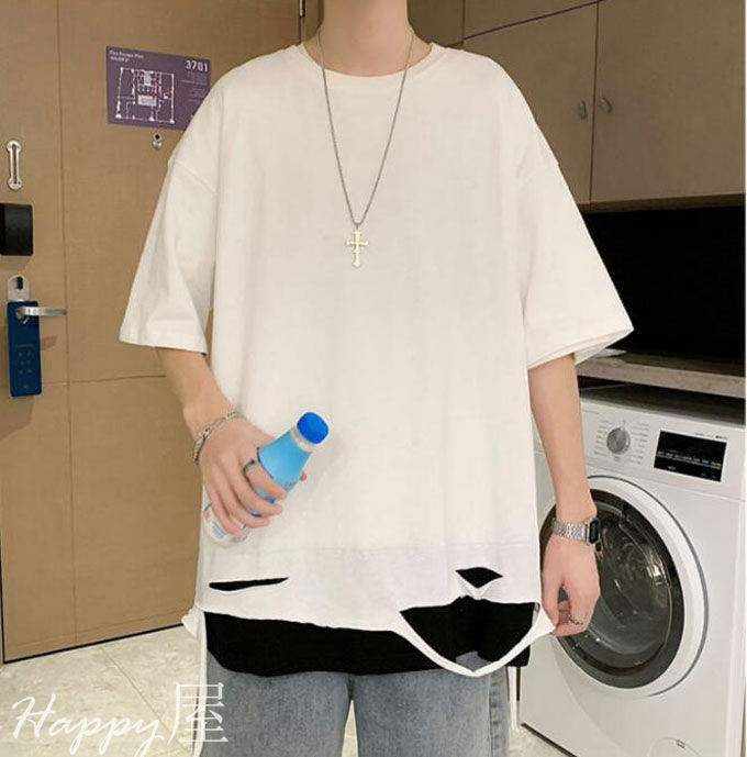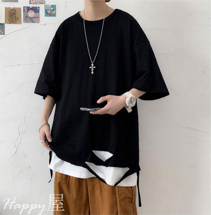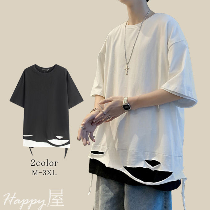 Tシャツ 半袖 ダメージ加工 メンズ トップス Tシャツ カットソー 通販 ホワイト ブラック M L XL 2XL 3XL