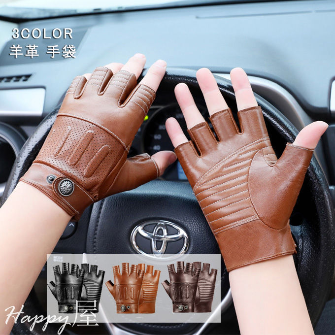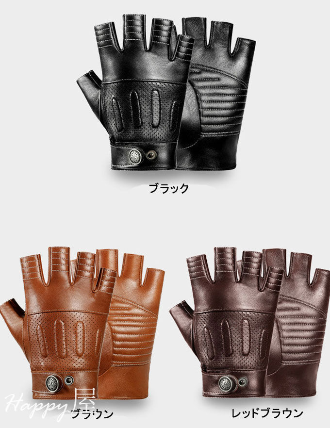 手袋 メンズ 指なし手袋 革 羊革 レ 手袋 アームウォーマー メンズ手袋 豊富 ブラック ブラウン レッドブラウン M L XL