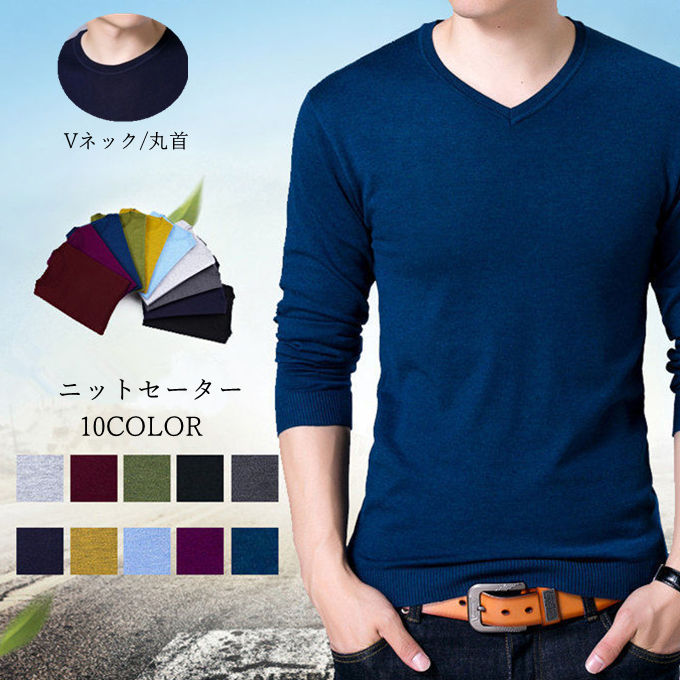 セーター ニット メンズ ニットソー メンズファッション 早い者勝ち M L XL 2XL 3XL ブラック イエロー ネイビー ワインレッド スカイブルー グリーン ライトグレー パープル ダークグレー ダークブルー
