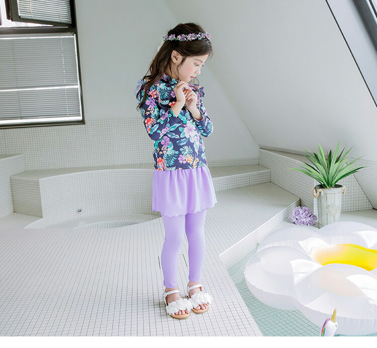 長袖のラッシュガードとパンツの花柄プリント水着