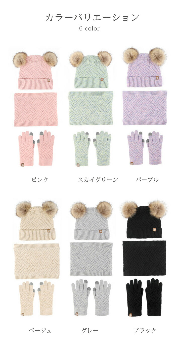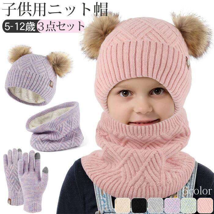 3点セット ニット帽 キッズ 冬用 子 キッズ 帽子 ニット帽 続々登場 ピンク スカイグリーン パープル ベージュ グレー ブラック