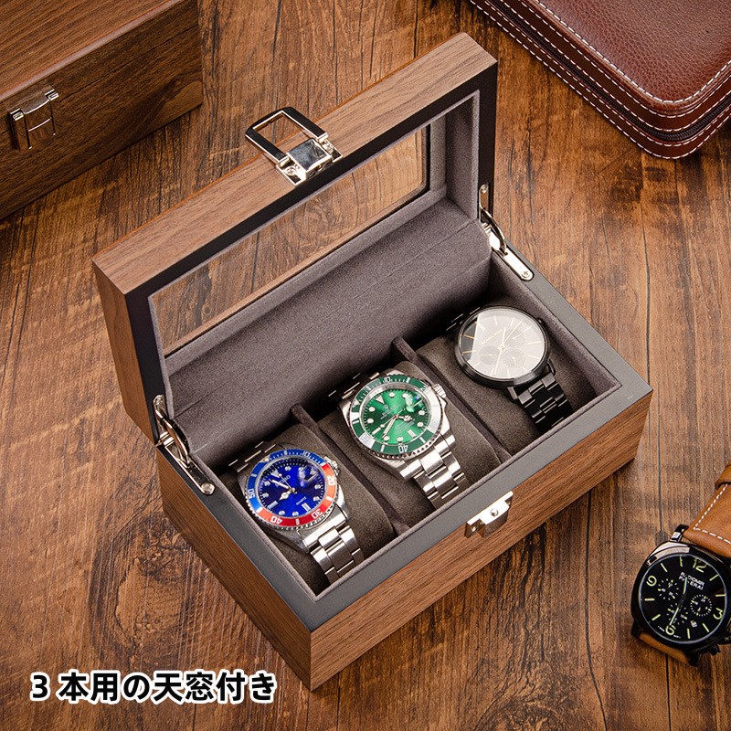 時計ケース クルミ木製 3本 4本 6 腕時計用アクセサリー 腕時計収納ケース 特集 3本用 4本用 6本用 8本用 10本用 天窓付き 天窓なし