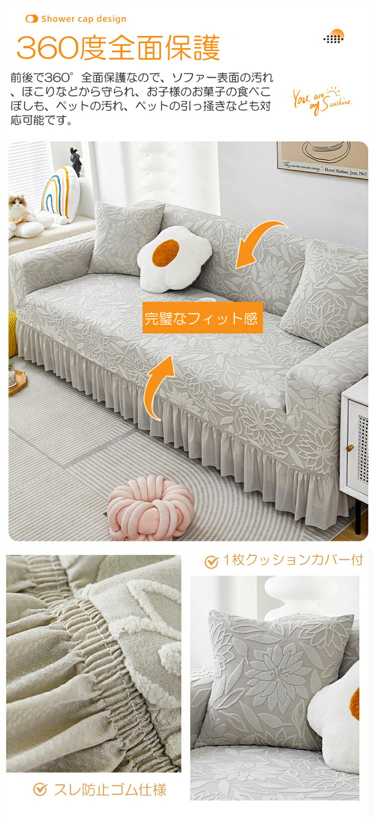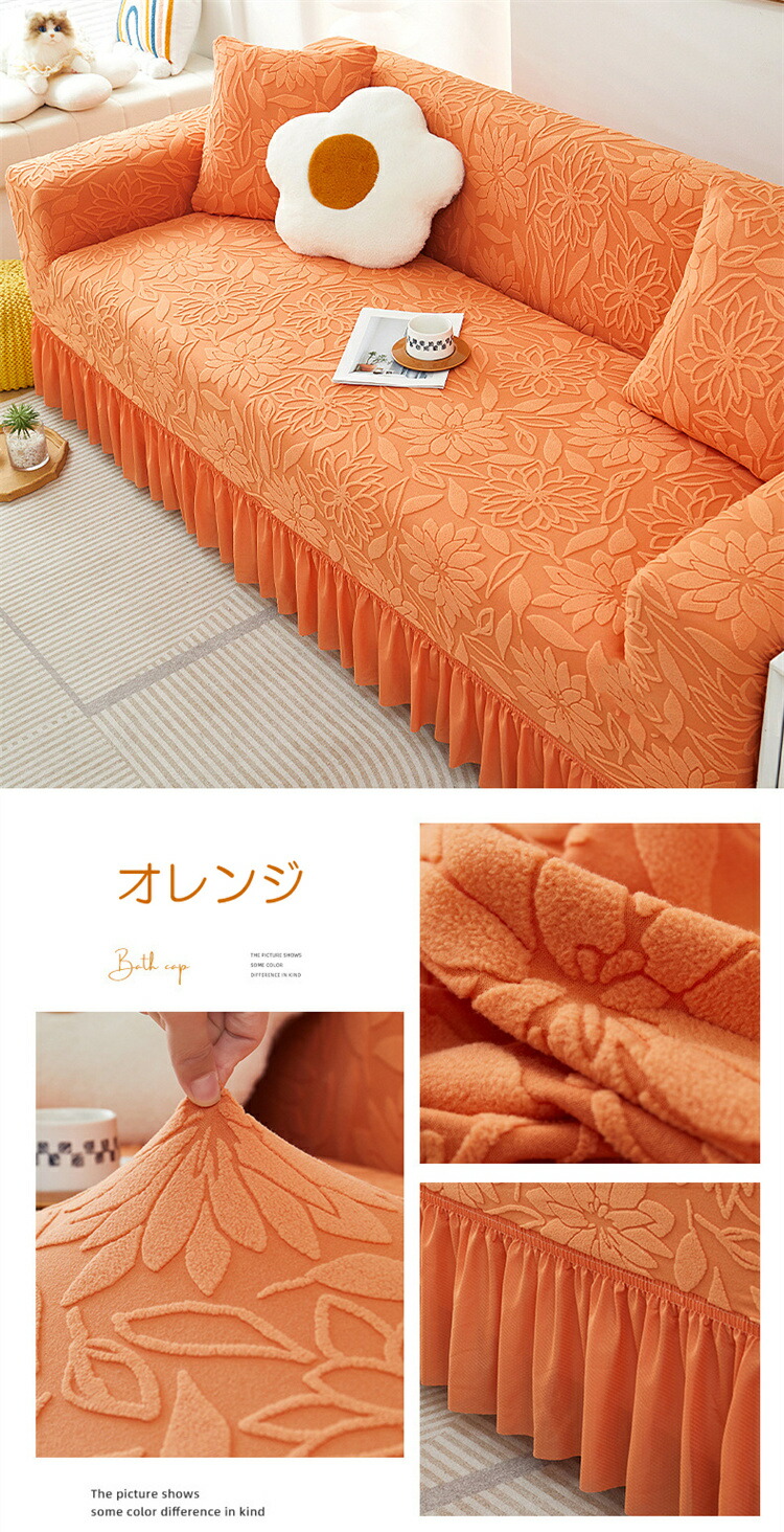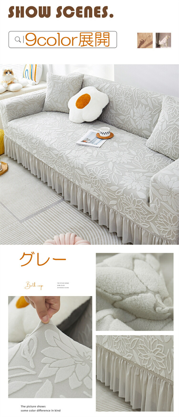 フリル ソファーカバー 肘あり 3人掛 グレー 薄いブラウン ブラウン 濃いグレー ピンク オレンジ グリーン ブルー ベージュ オットマン 1人掛け 2人掛け 3人掛け 4人掛け 5人掛け