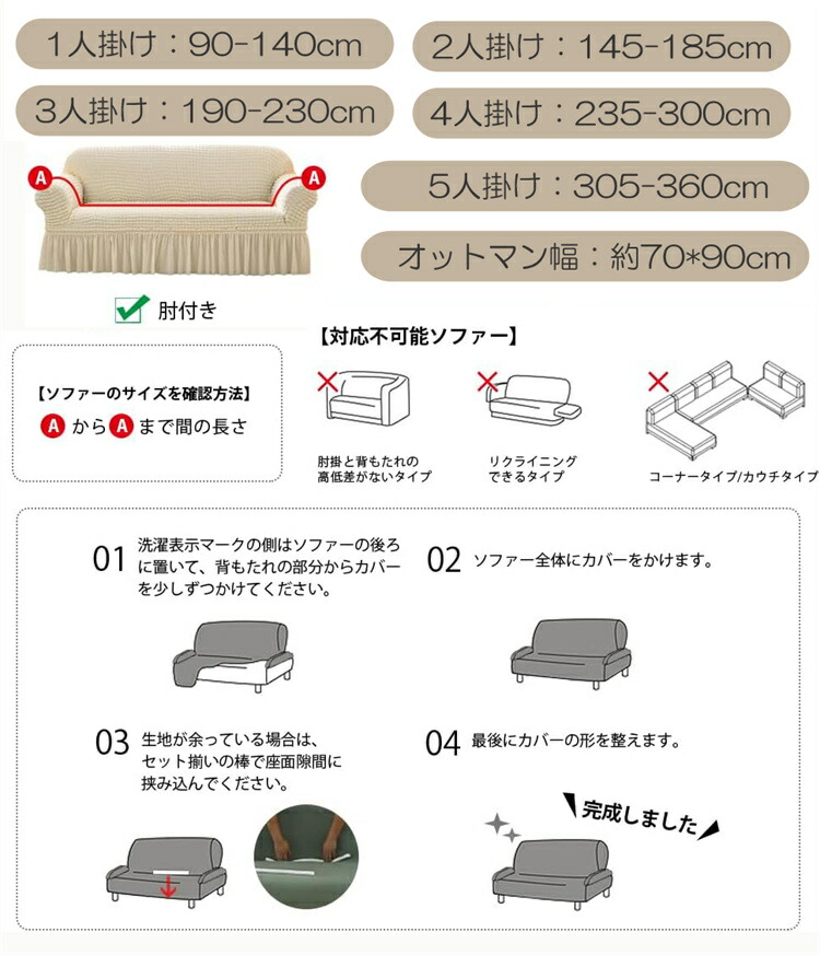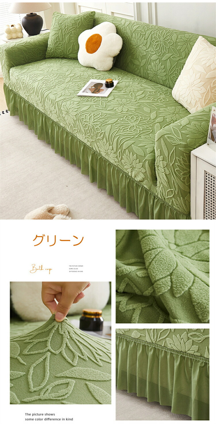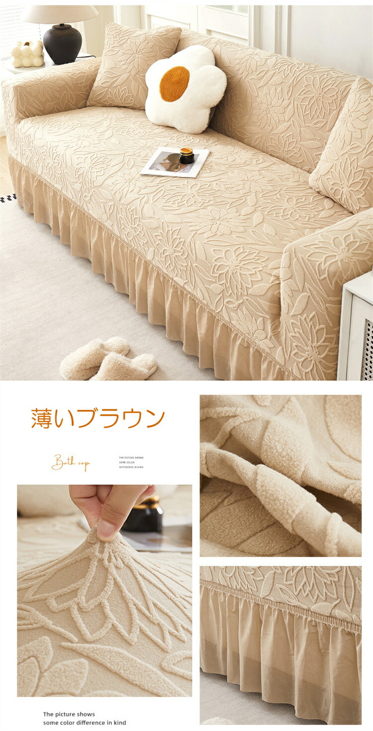 フリル ソファーカバー 肘あり 3人掛 グレー 薄いブラウン ブラウン 濃いグレー ピンク オレンジ グリーン ブルー ベージュ オットマン 1人掛け 2人掛け 3人掛け 4人掛け 5人掛け