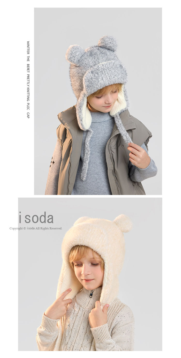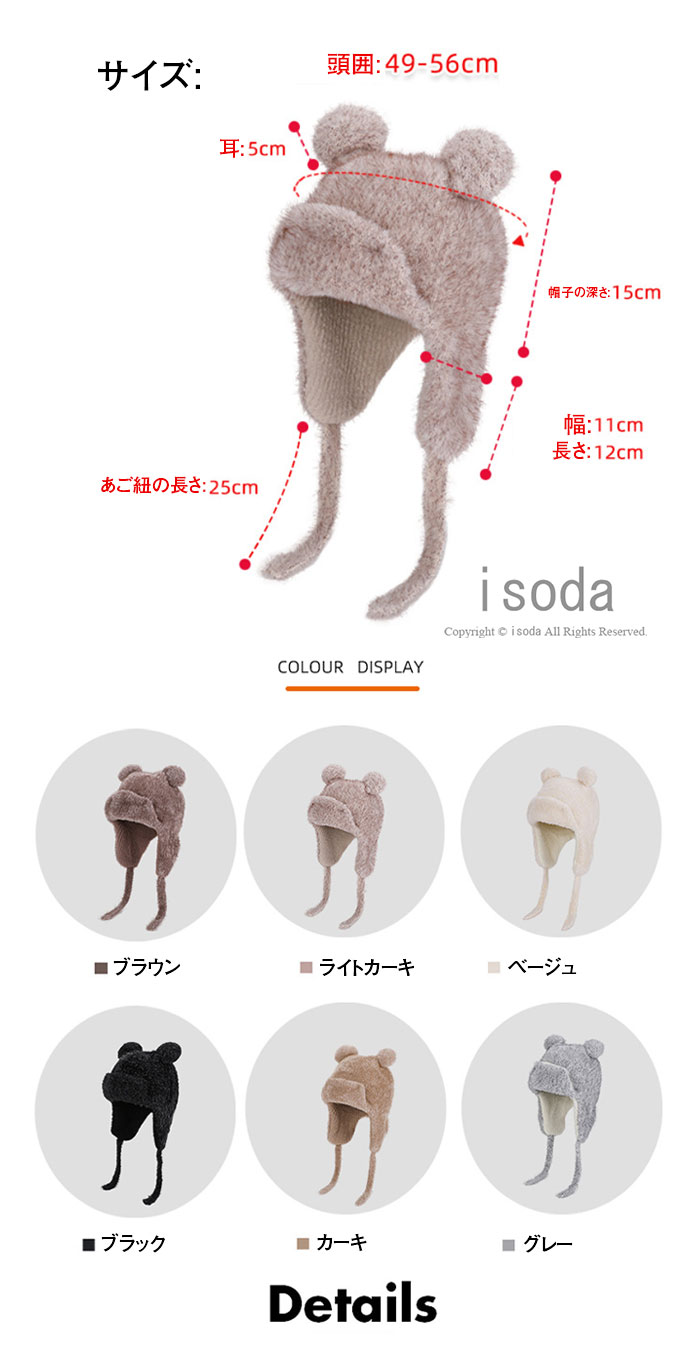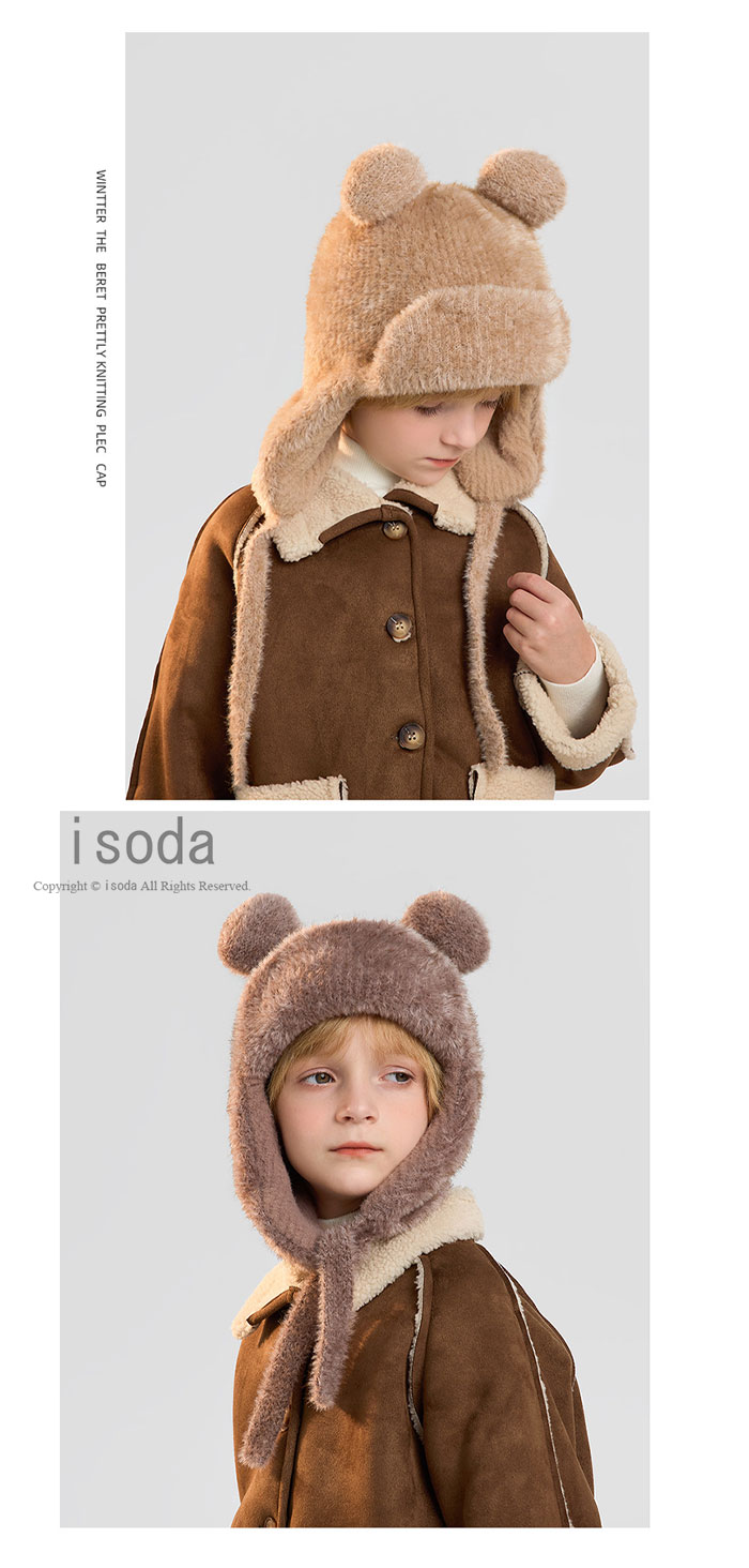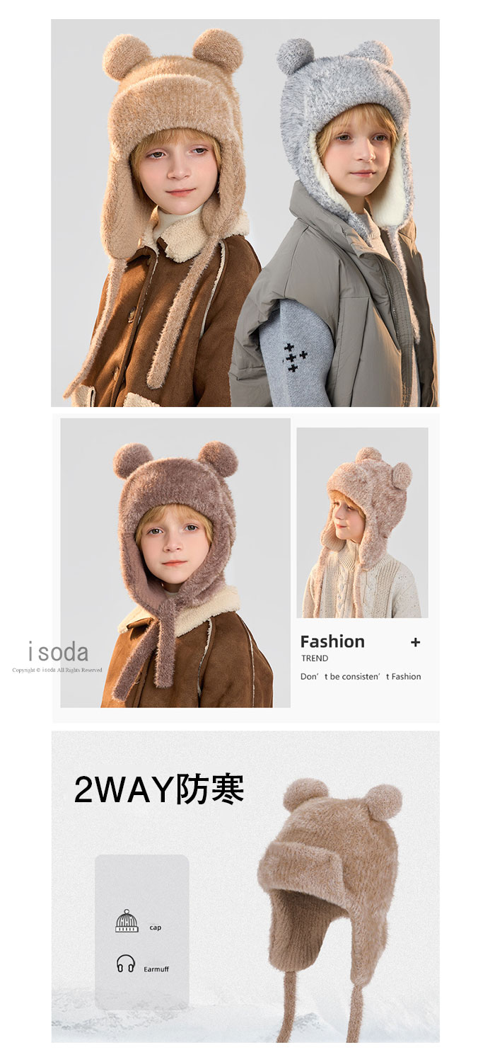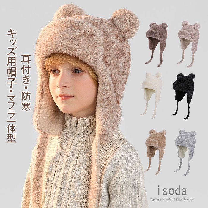 子供用 防寒帽子 冬用ハット もこもこ キッズ 帽子 ニット帽 新登場! ブラウン ライトカーキ ベージュ ブラック カーキ グレー