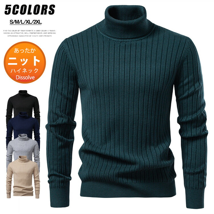 ハイネックセーターメンズ長袖ニットセー トップス ニット セーター 豊富 S M L XL 2XL ライトグレー ネイビー 黒 ベージュ ビリジャン