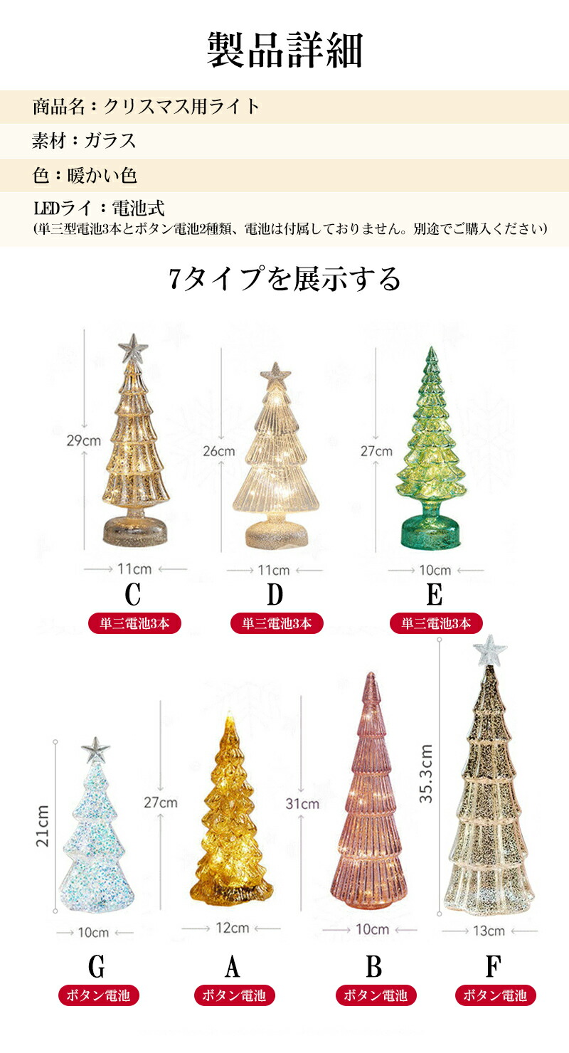 ガラス クリスマスツリー LED クリ Aタイプ Bタイプ Cタイプ Dタイプ Eタイプ Fタイプ Gタイプ