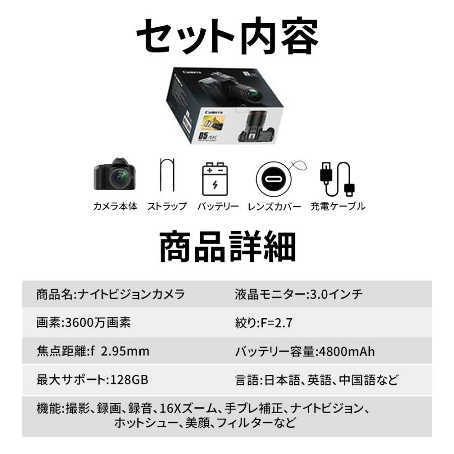 デジカメ デジタルカメラ 4K高画質 ブラック ホワイト 標準セット 豪華セット