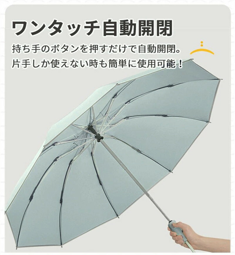 逆さ傘 折りたたみ傘 自動開閉 10本 傘 男女兼用雨傘 続々登場 ライトグリーン ピンク ベージュ ダークグリーン ネイビー ブラック