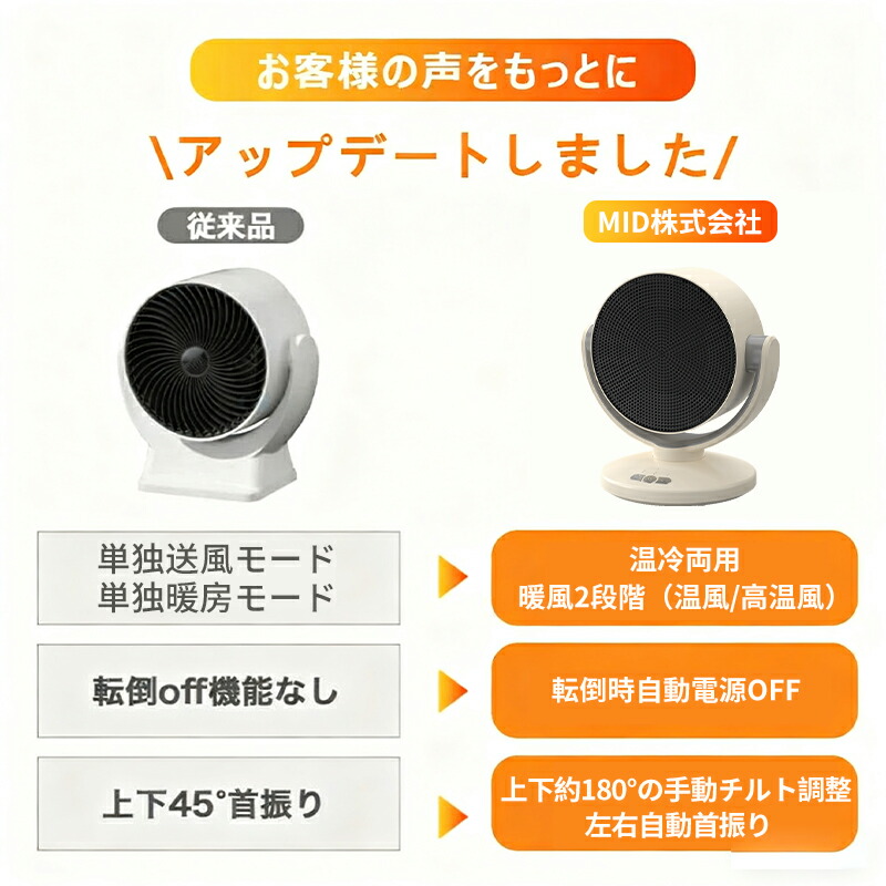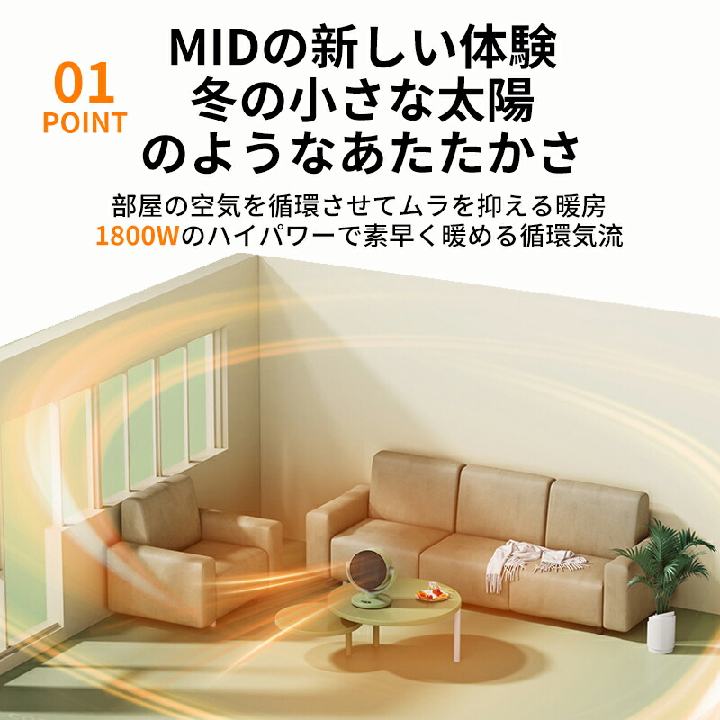 MID公式 暖房 速暖 スリム コンパクト 足元暖房 静音 省エネ 節電 脱衣所 洗面 持ち運び トイレ キッチン リビング ホワイト