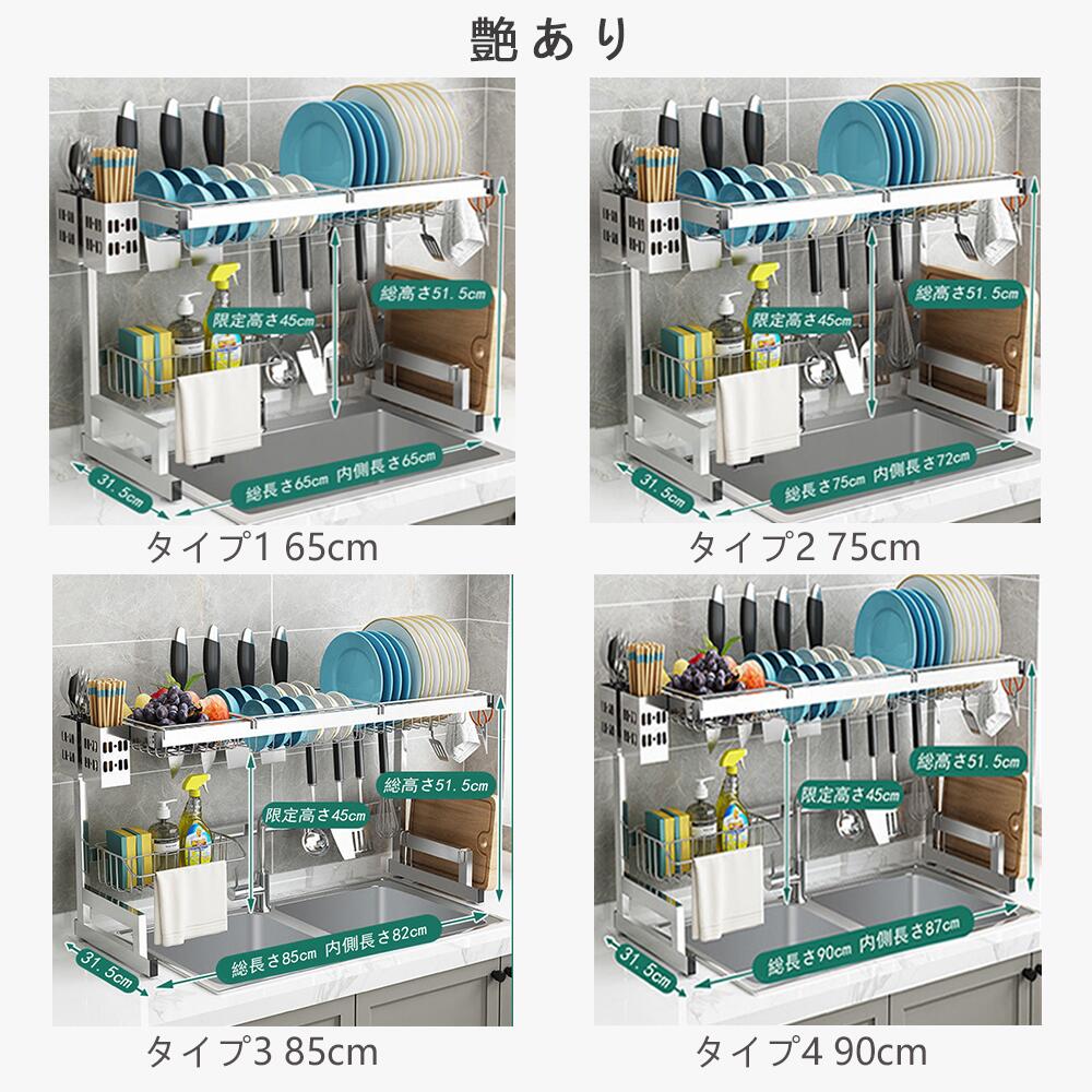 水切りラック シンク上 2段 水切りか キッチン用品 食器 調理器具 超目玉商品 ステンレス ブラック 65*31.5*51.5 75*31.5*51.5 85*31.5*51.5 90*31.5*51.5