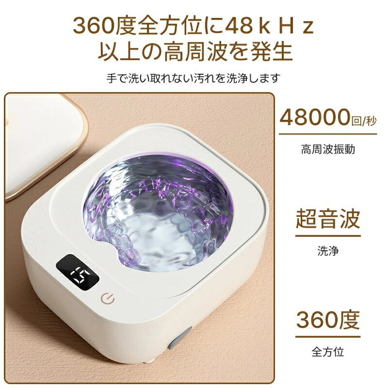 超音波洗浄機 クリーナー UVC除菌 360°洗浄 3段階時間設定 48kHz強力洗浄 簡単操作 タンク容量250ml 除菌 ウイルス対策 超音波洗浄器 眼鏡 時計 貴金属 アクセサリー 腕時計 宝石