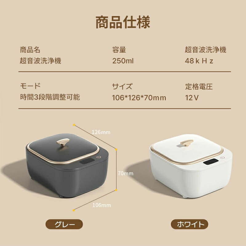 超音波洗浄機 クリーナー UVC除菌 グレー ホワイト
