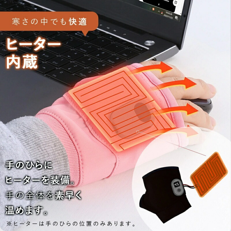電熱グローブ usb 充電式 ヒーター ピンク ブラック